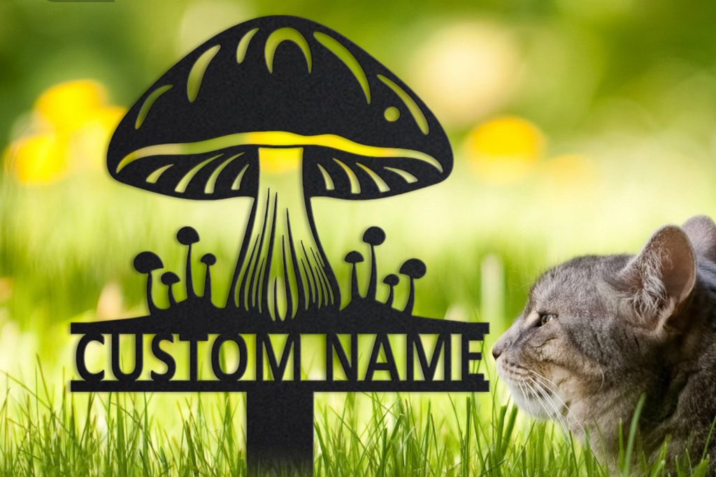 Personalized Mushroom Garden Metal Sign: Garden Stake Decor