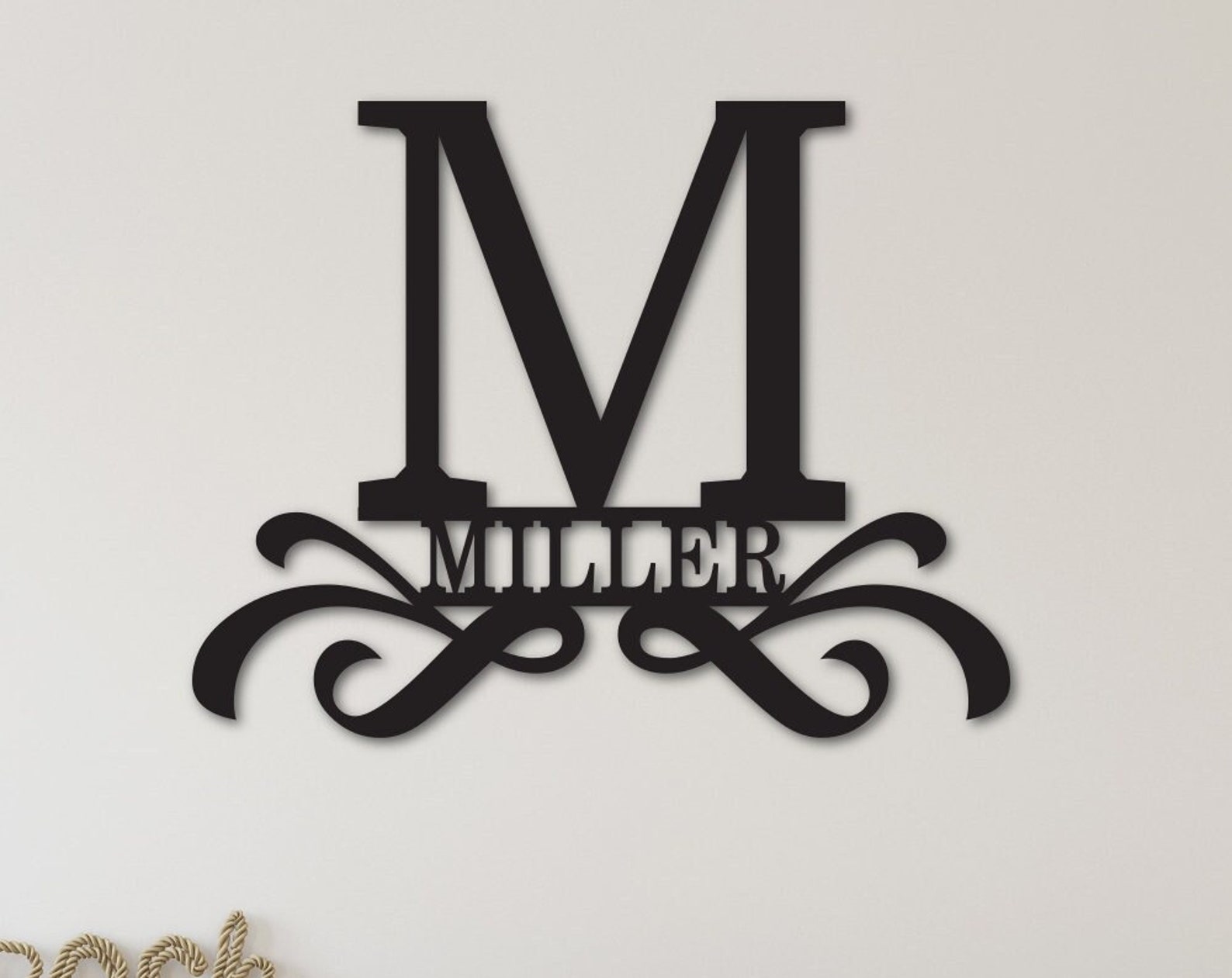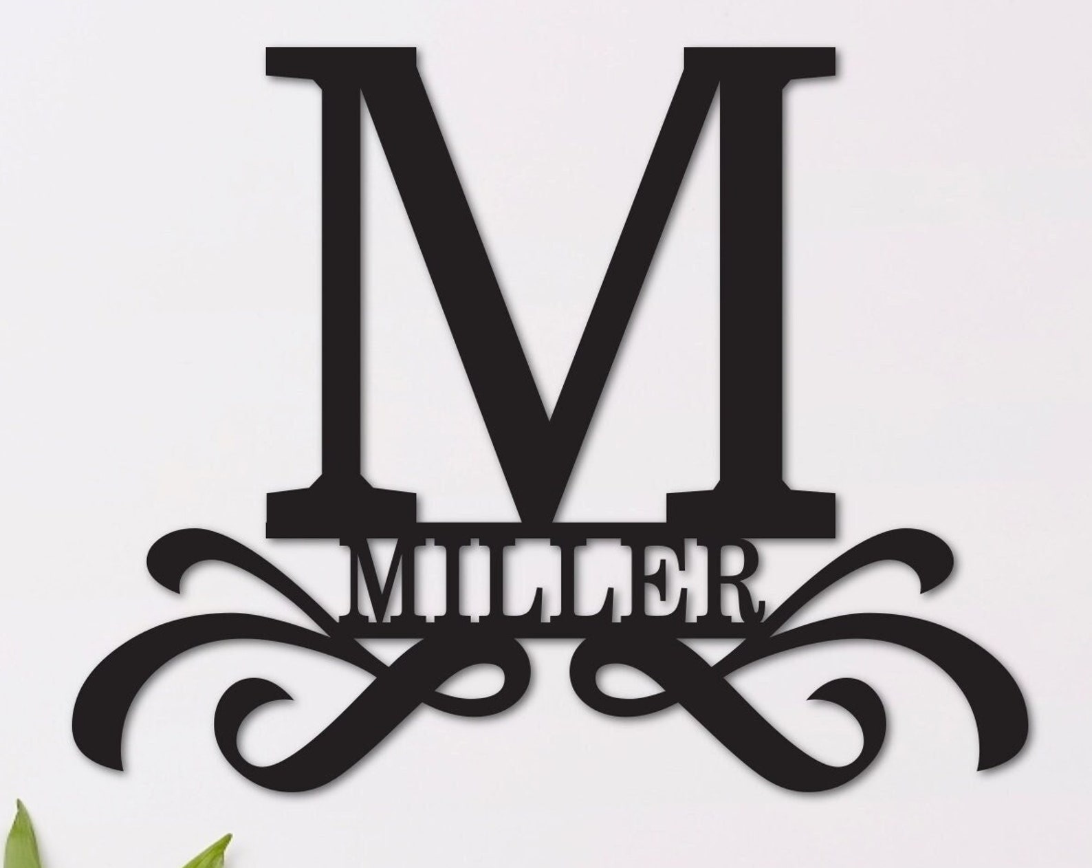 Personalized Family Name Metal Sign | Custom Name Door Hanger Wedding Gift | Outdoor Last Name Monogram | Letter Initial Door Sign Hanger