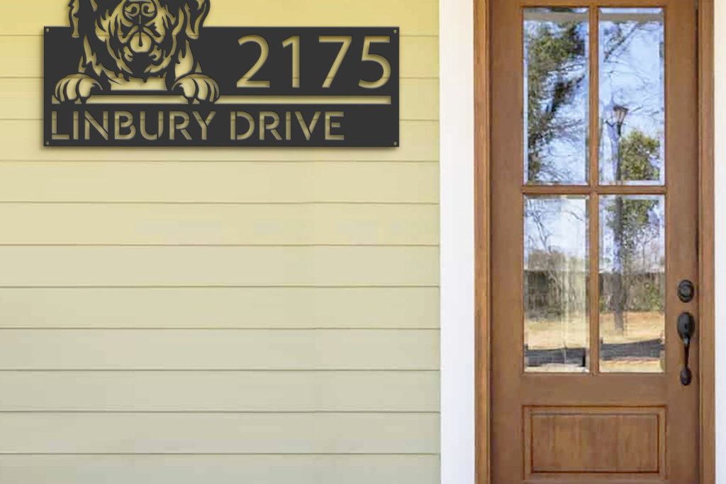Be the first to review “Personalized Newfoundland Metal Address Sign – Puppy Decor”