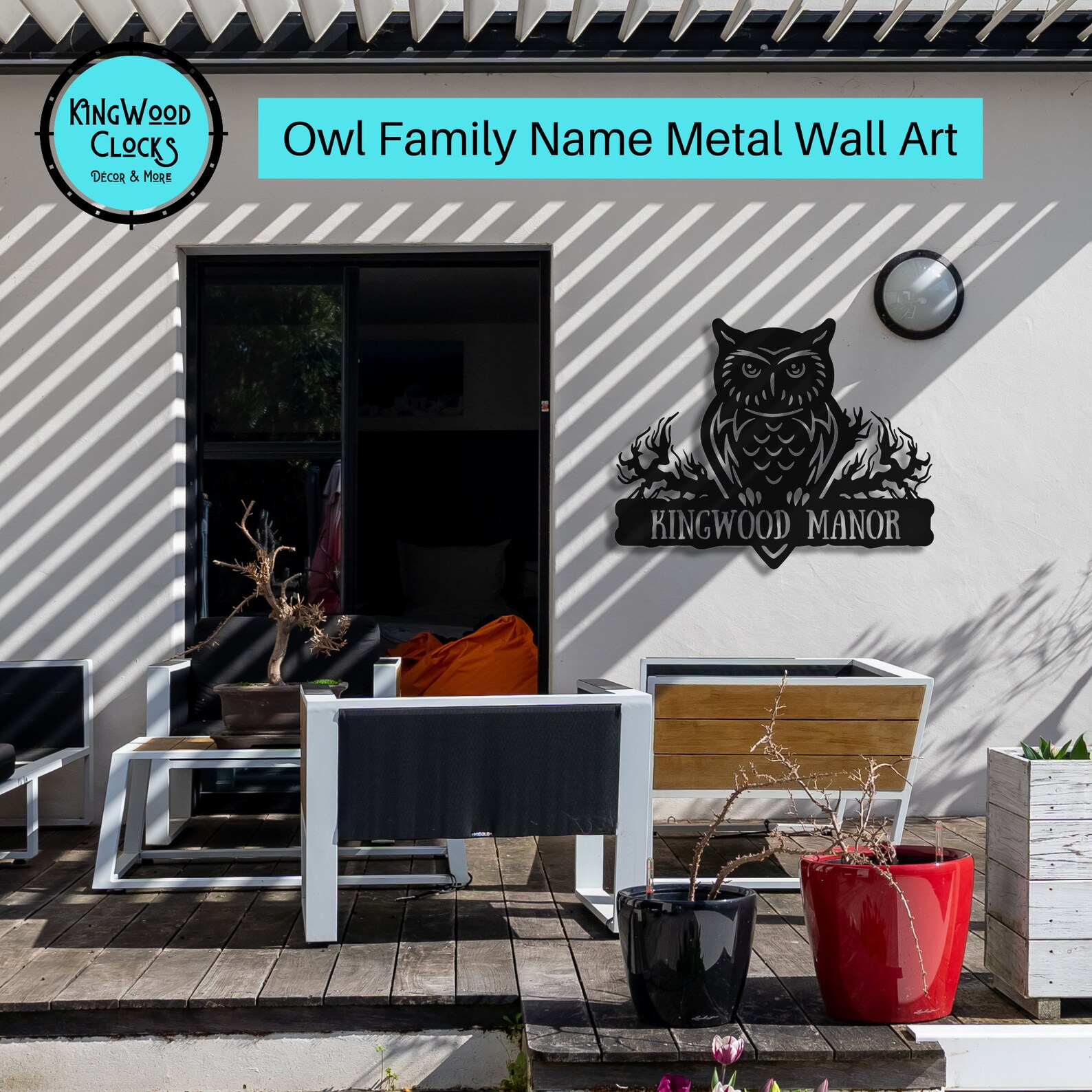 Show off your family name with this original Personalized Owl Metal Wall Art. Modern, stylish, and ready to be displayed with a mighty owl overlooking your chosen space! Display on your front porch to greet all that enter your home.