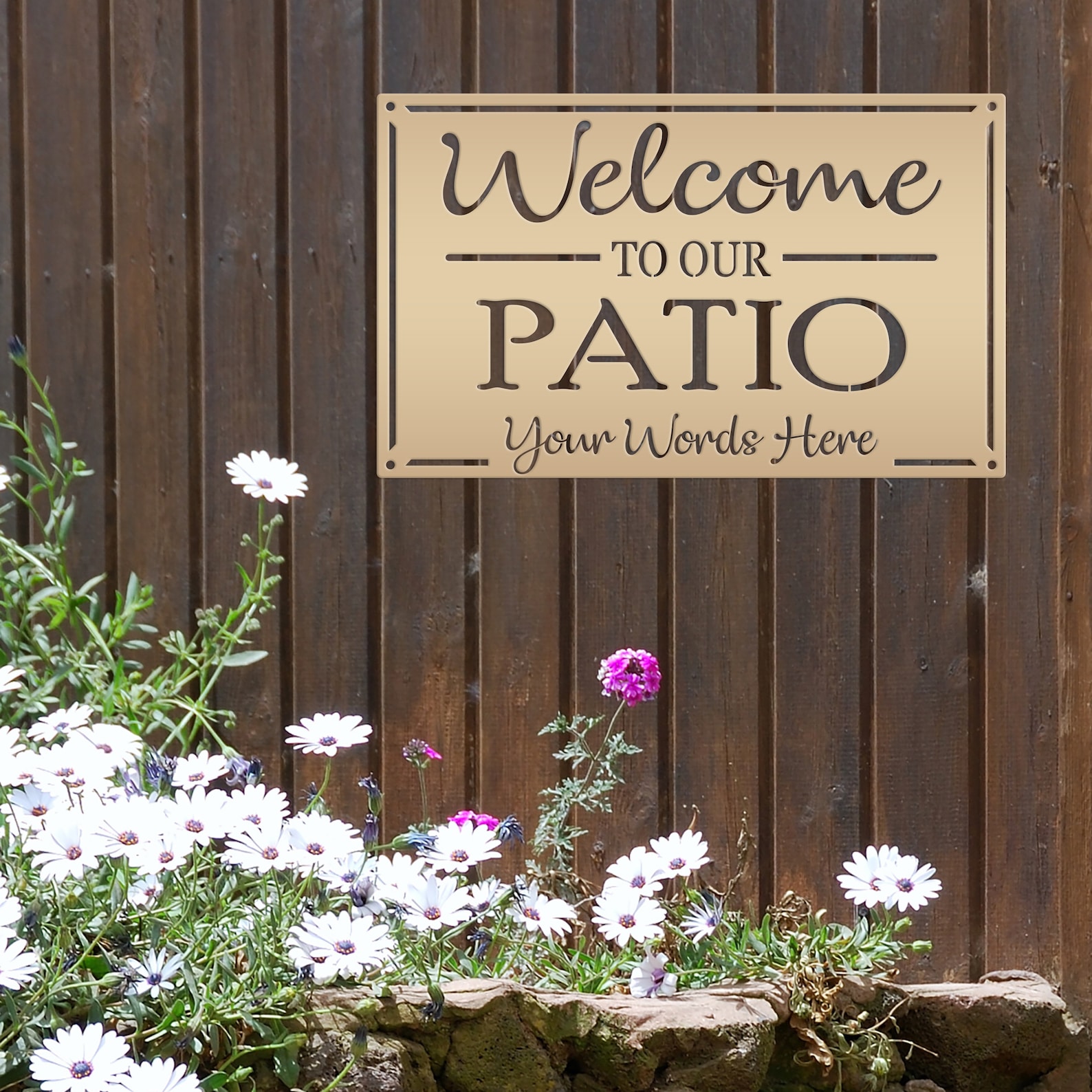 Welcome to our Patio…along with the custom wording left at checkout, on the bottom line.
