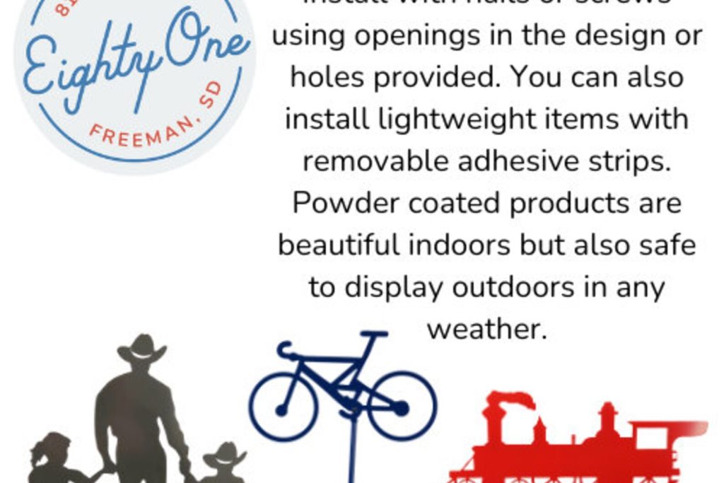Text is applied with a weather-safe white vinyl decal on both sides.