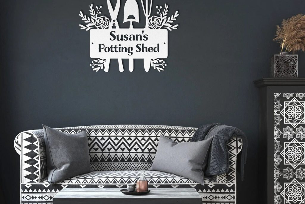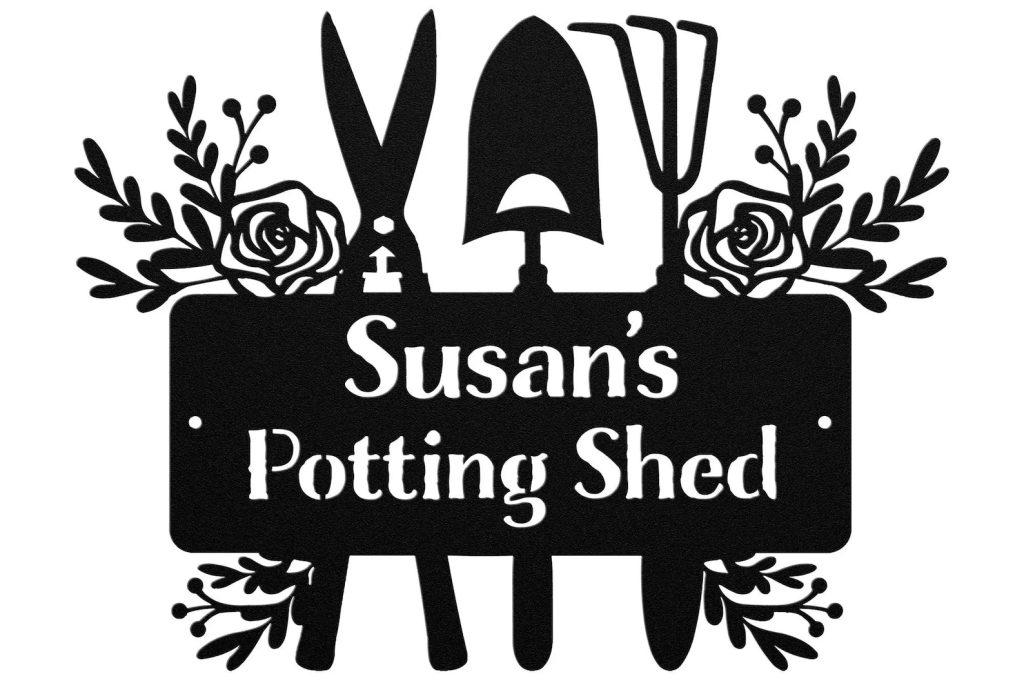 Elevate your garden with a beautiful potting shed metal sign personalized for your loved one.