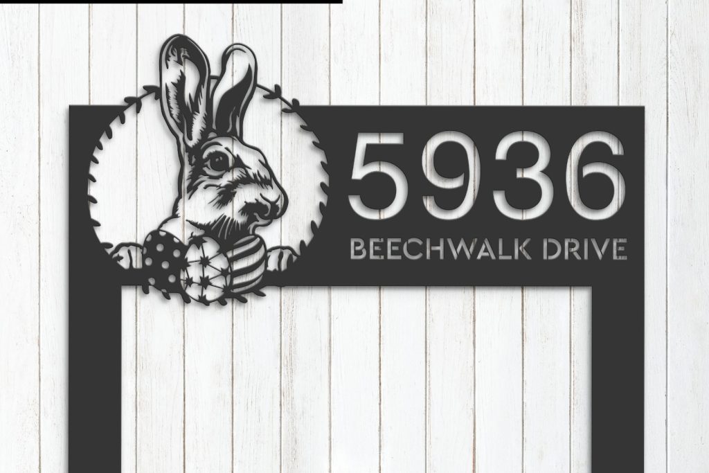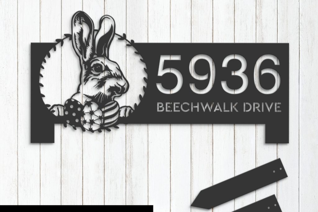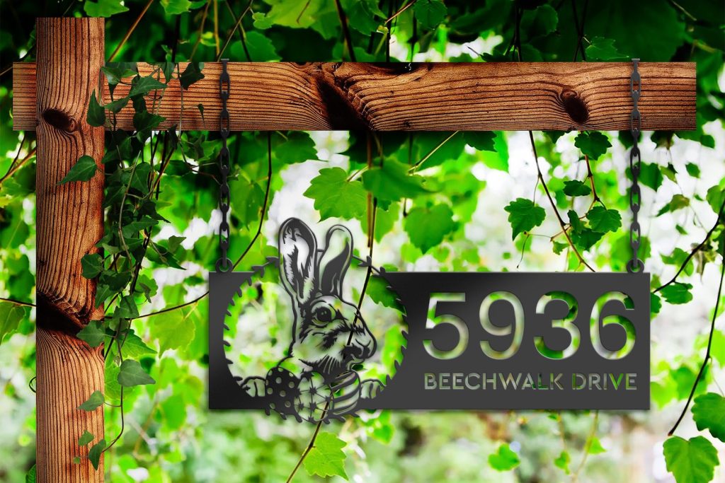 Personalized Rabbit Bunny Metal Address Sign – Farmhouse Yard Plaque