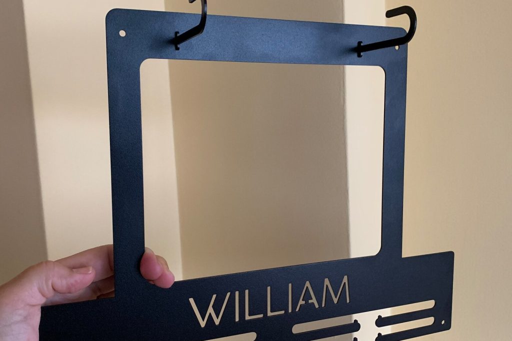 This personalized medal holder with a custom name is the best way to display all that bling that has been collected from the championship circuit.