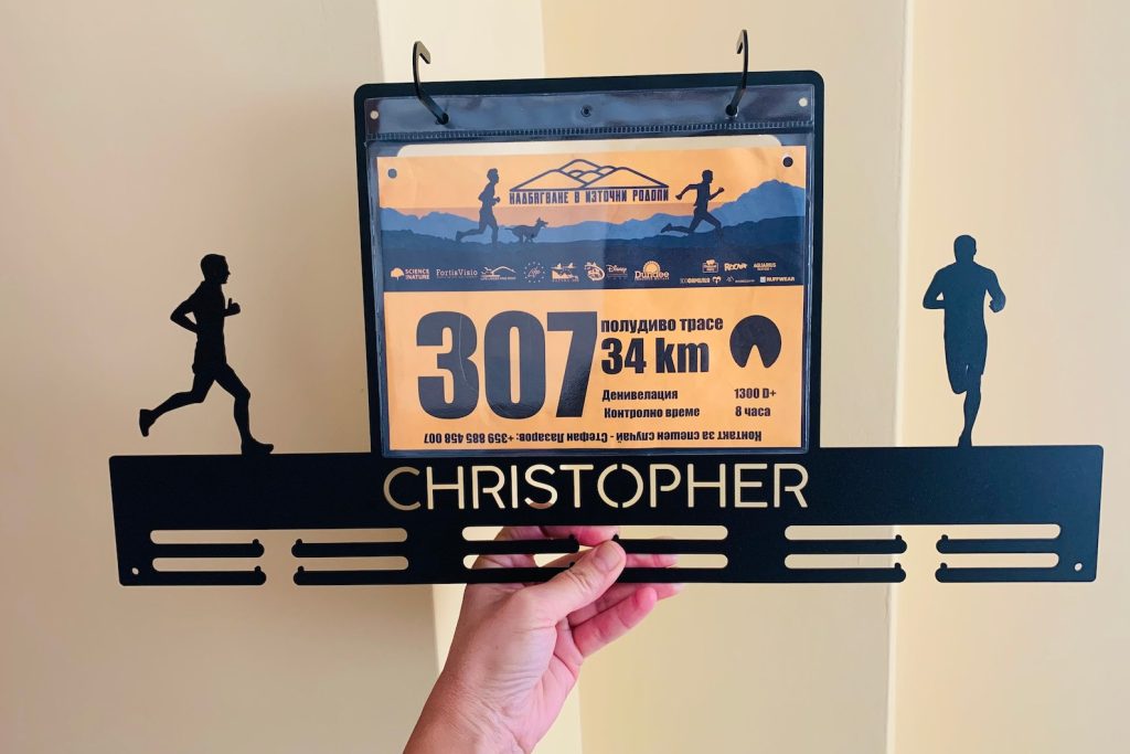 – 1 medal hanger with custom name