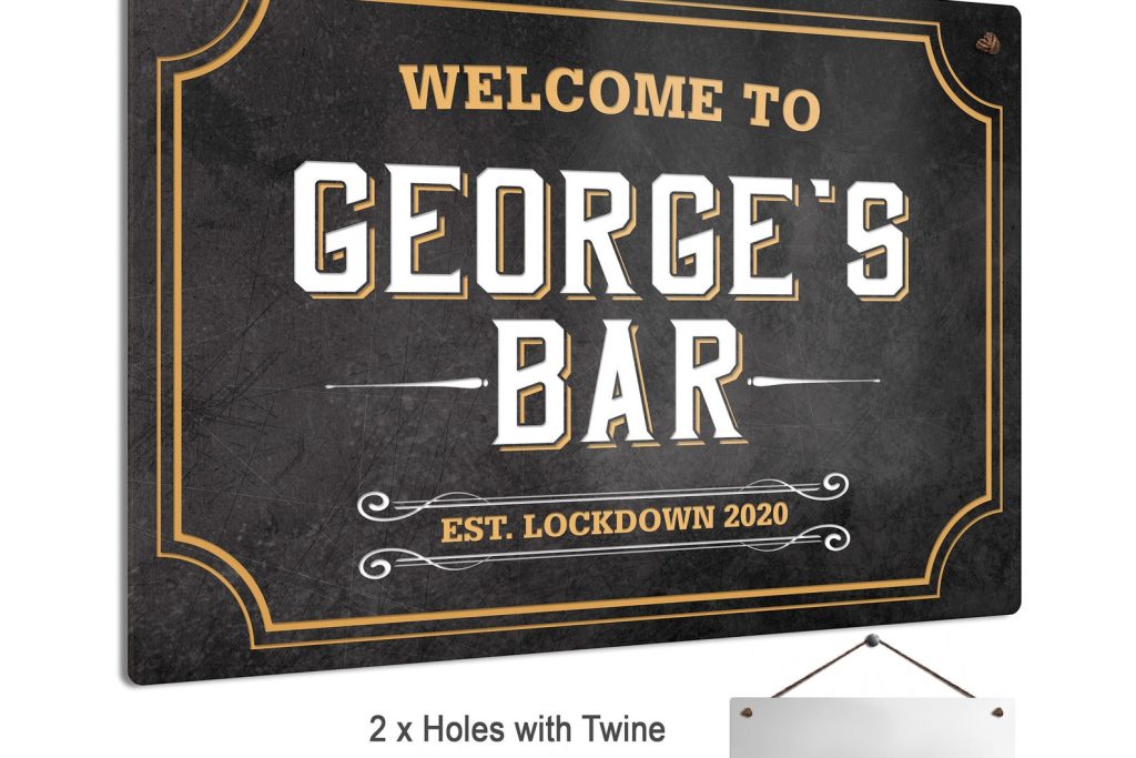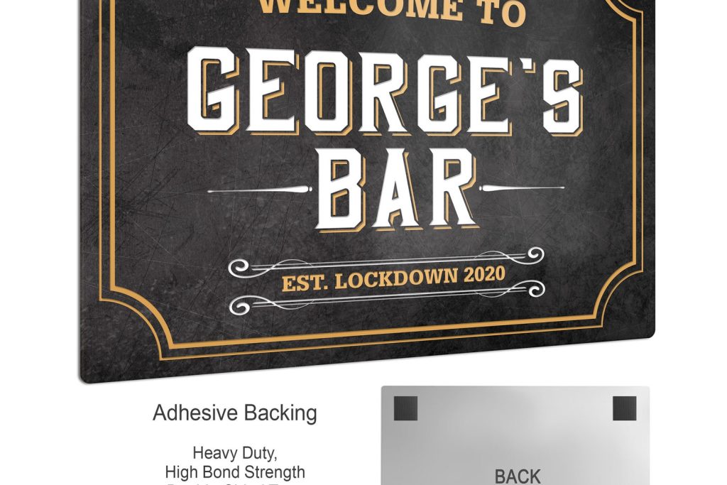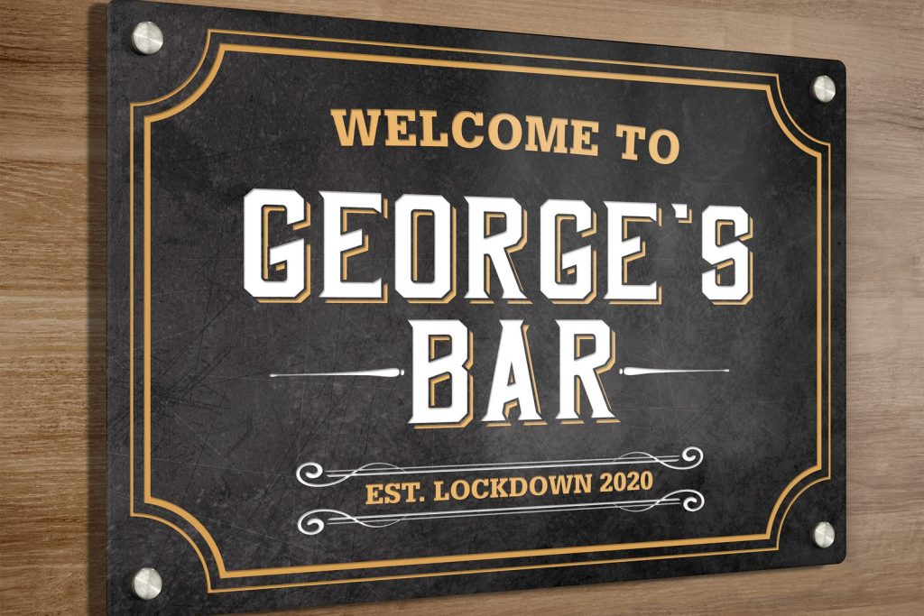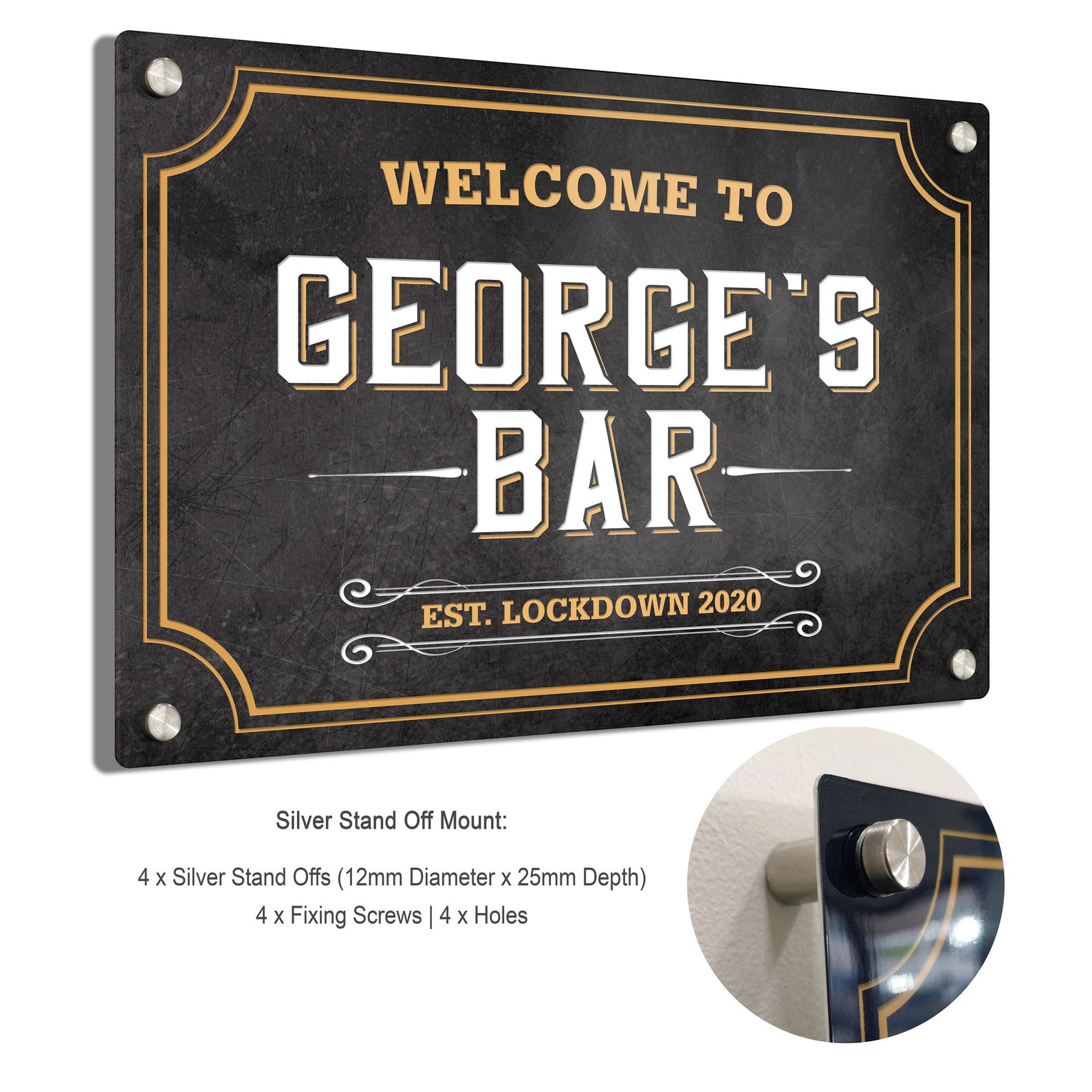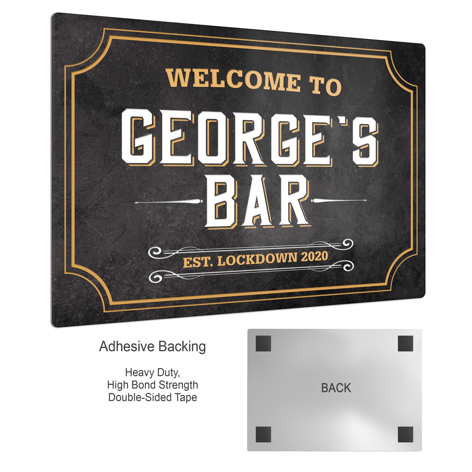 Personalised Welcome Bar Sign with Rustic Black Chalk Board Background.