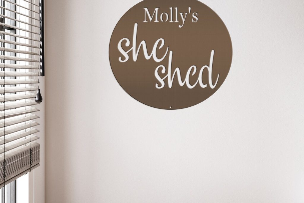 This Personalized She Shed Metal Sign is the perfect sign for your she shed space.