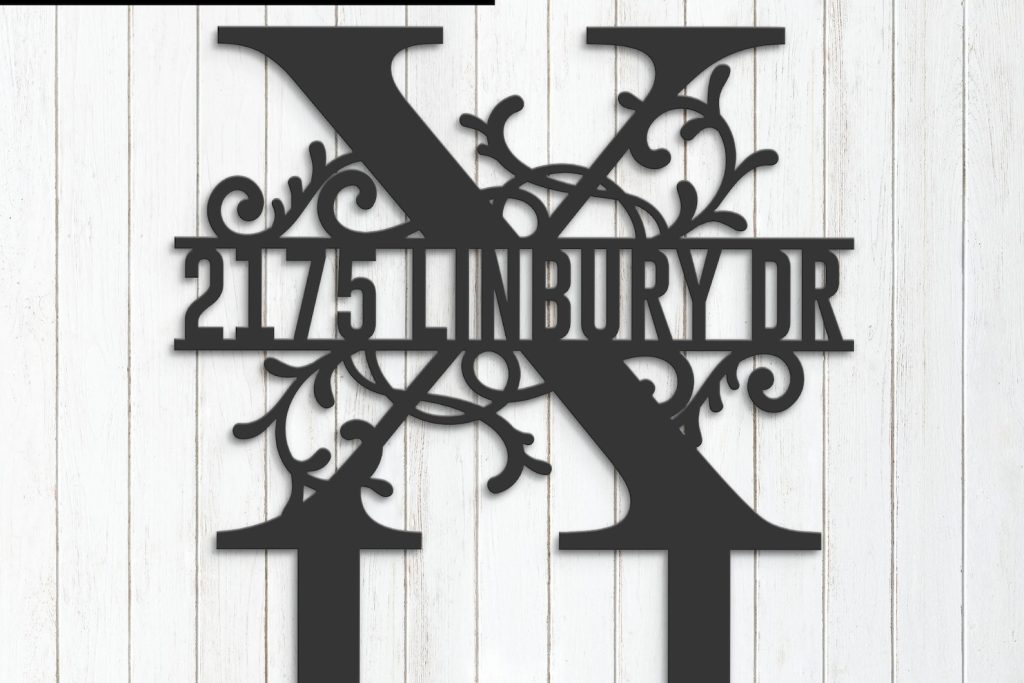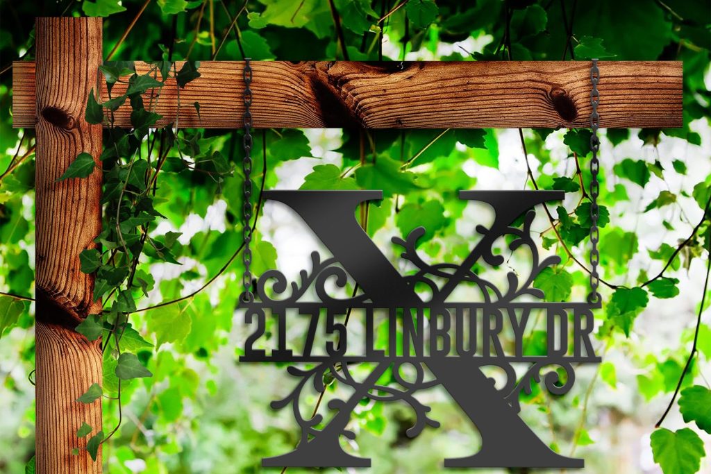 Be the first to review “Personalized Split Letter X Metal Address Sign – Floral”