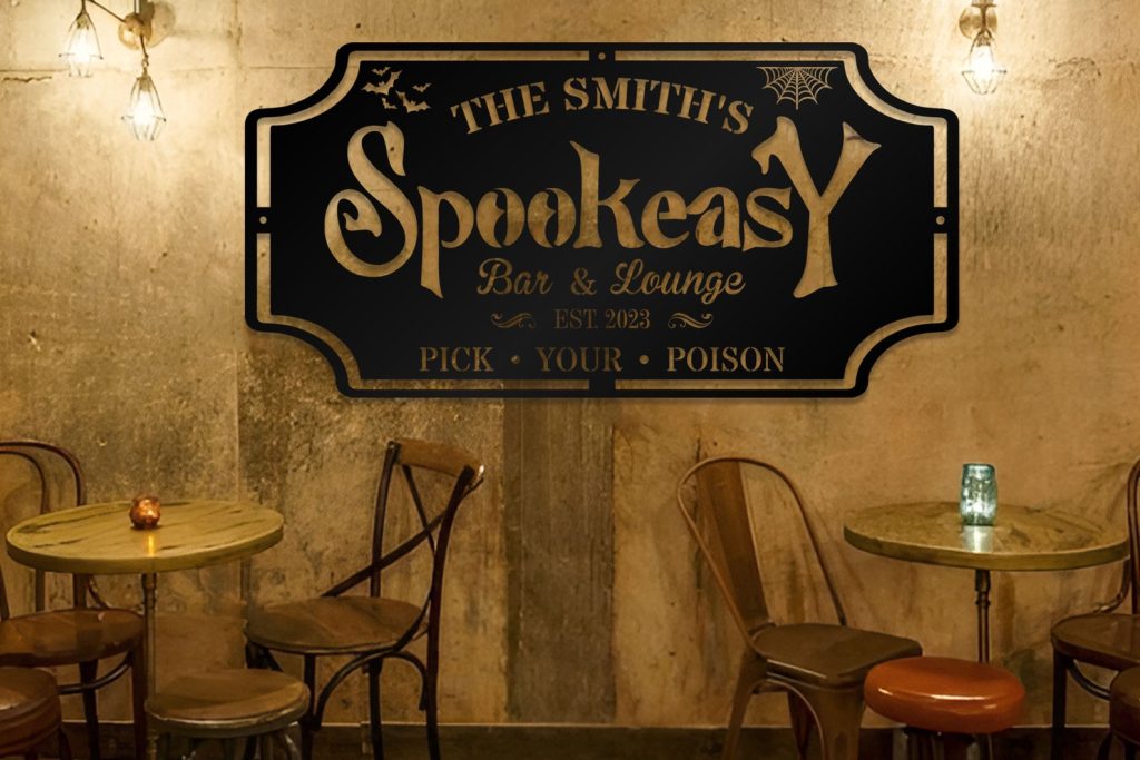 Personalized Spookeasy Sign,Halloween Sign,Bar and Lounge Decor,Home Wall Decor Creepy Rustic Fall Spooky Vintage,Outdoor Metal Sign Decoration