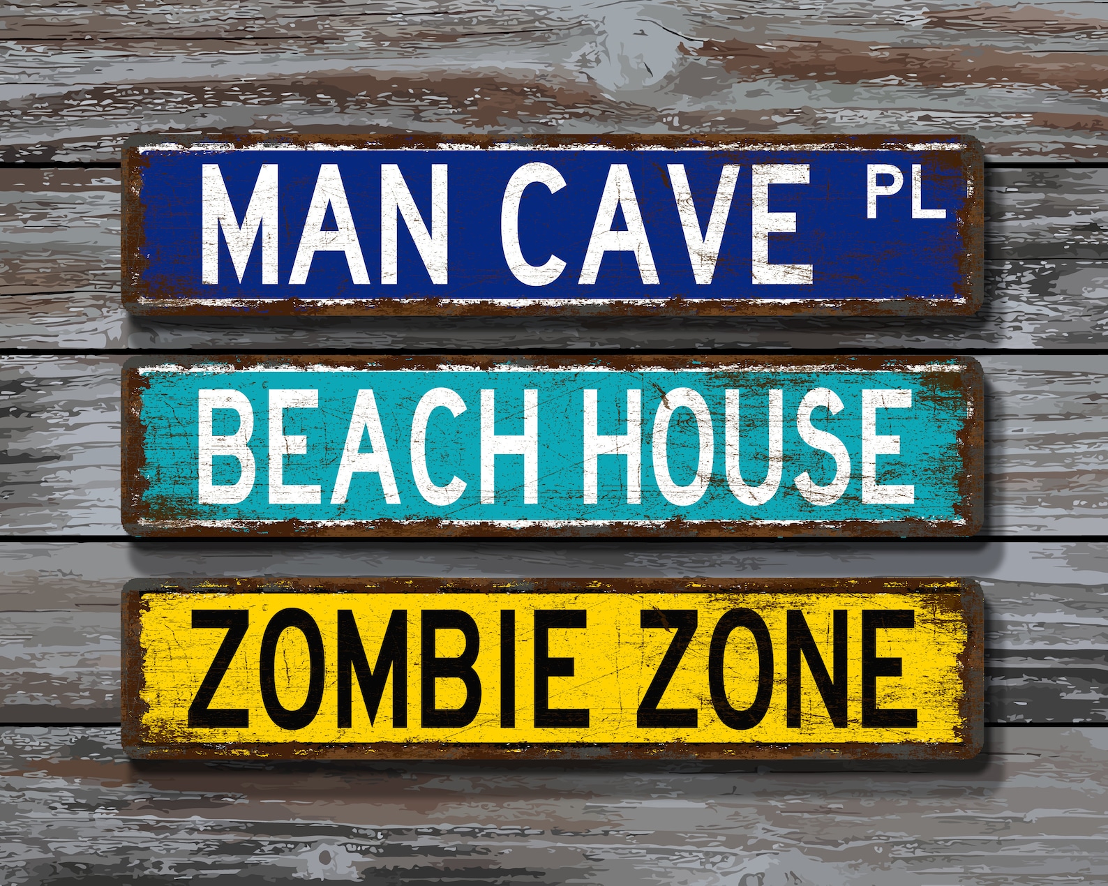 Please note: These signs do not have any raised or textured finish. Any rust, scratches or other markings are part of the images used to give the sign a nice vintage appeal. The finish is smooth satin. These signs can be printed on 1 side or 2 sides.