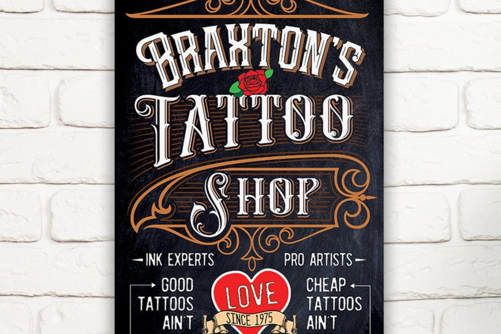 Personalized Tattoo Shop Sign – 8" x 12" or 12" x 18" Aluminum Tin Awesome Metal Poster