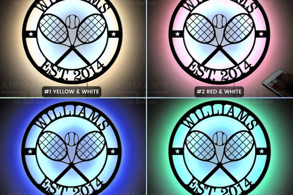 Personalized Tennis LED Sign, Coach9;s Metal Wall Art, Neon Tennis Racket Decor, Tennis Court Gift