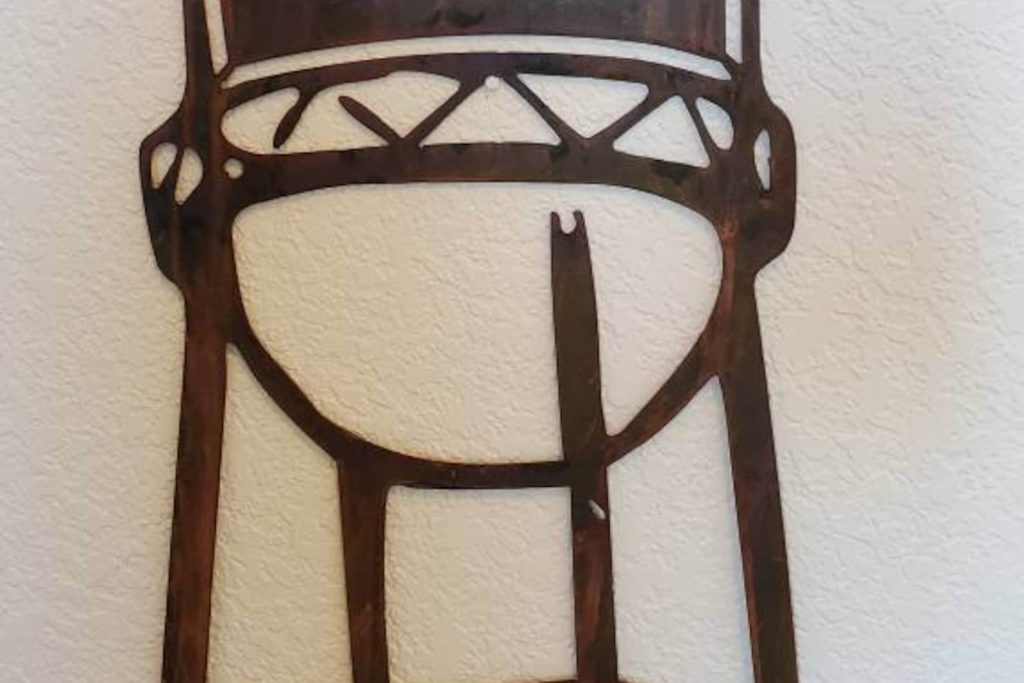 The water tower is 26 1/2 tall 13 1/4 wide. It is made out of 16-gauge metal and is powder coated.