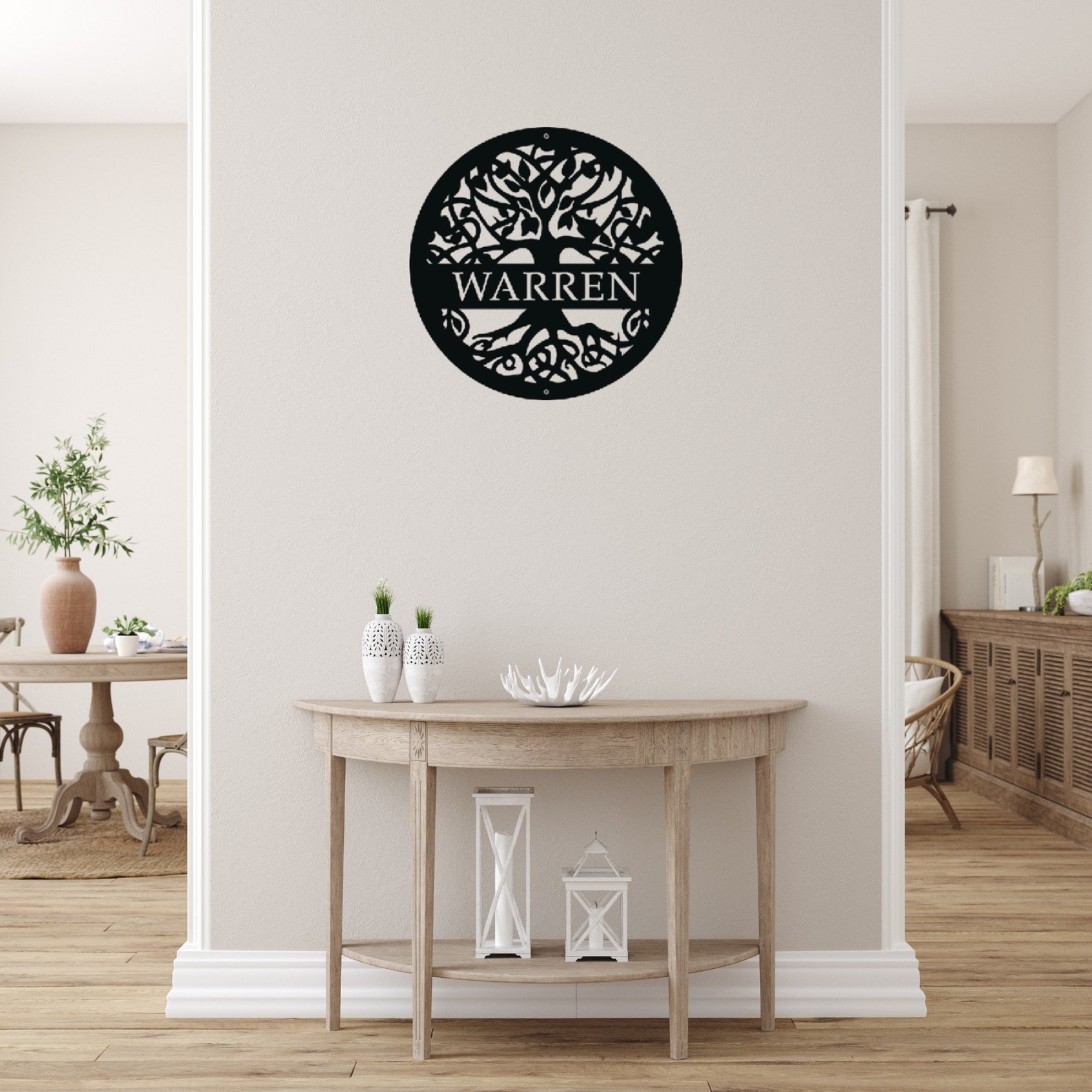 Elevate your home decor with our customized personalized Tree of Life sign, a timeless expression of elegance and connection to nature. This stunning metal wall art piece features the iconic Tree of Life design with your choice of custom text, making it a unique and thoughtful decoration for yourself or a cherished gift for others. Crafted from high-quality steel and available in a range of colors, it9;s durable and long-lasting. With easy installation and versatile use for both indoor and outdoor spaces, this Tree of Life sign is the perfect addition to any home. Transform your living space today with this meaningful and beautiful symbol of growth and connection