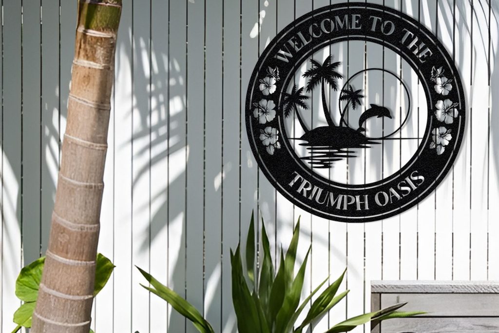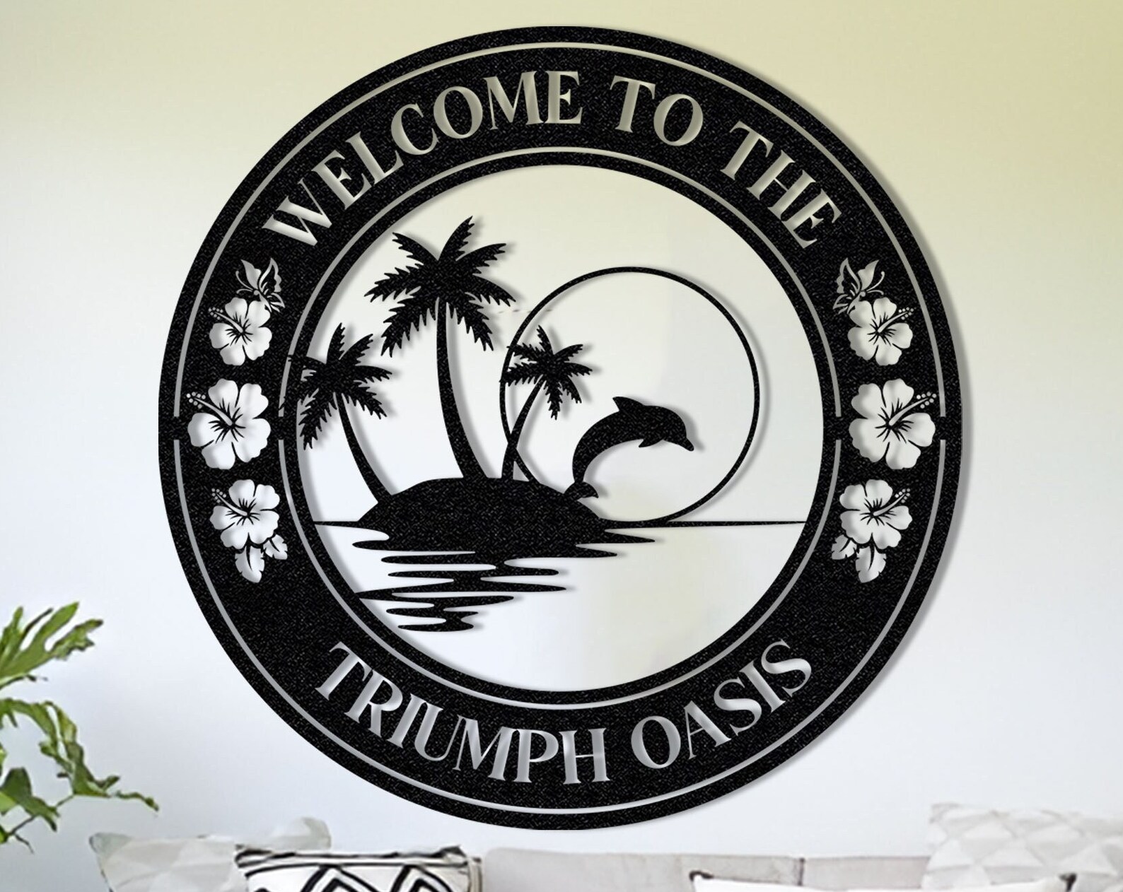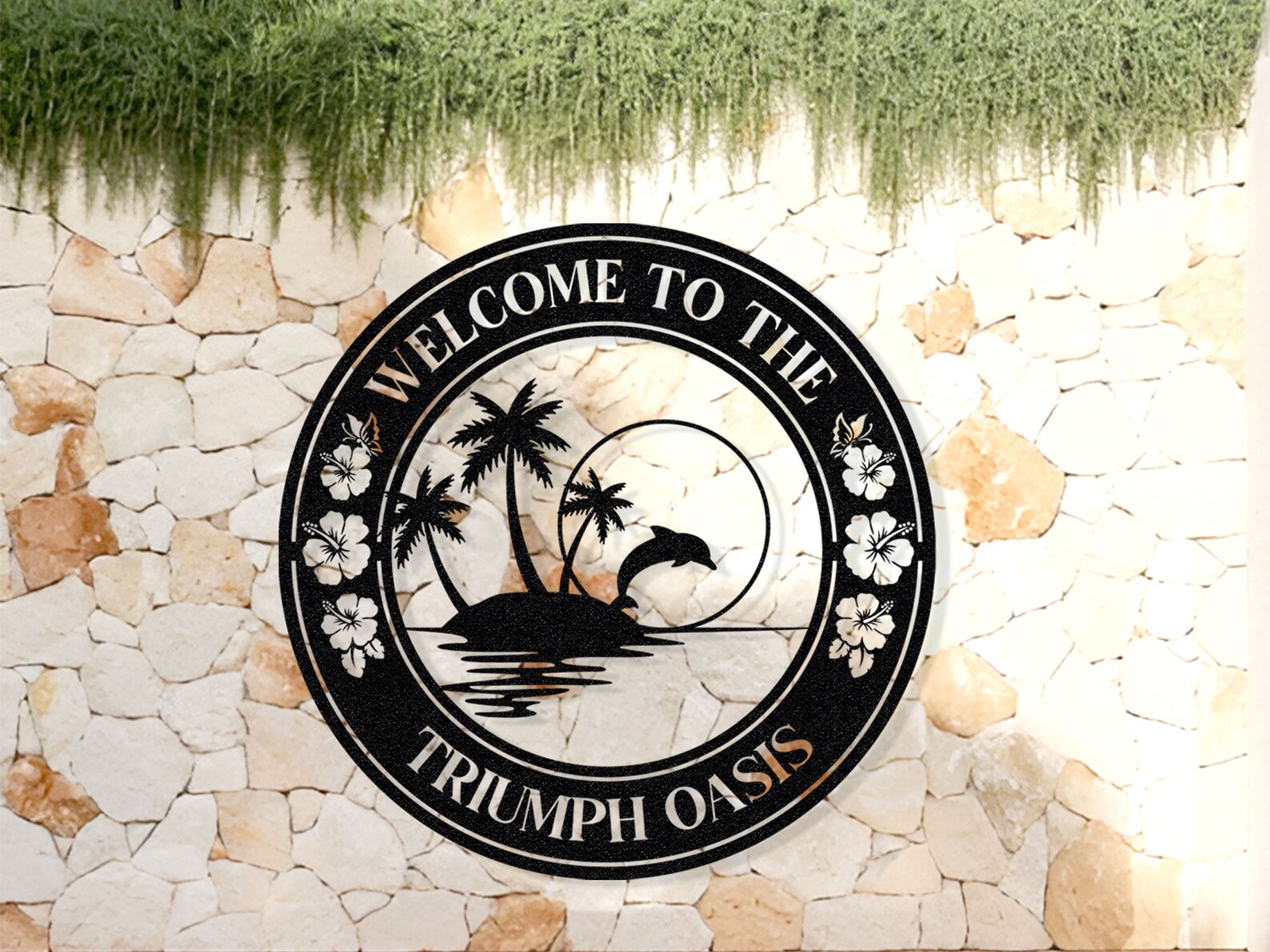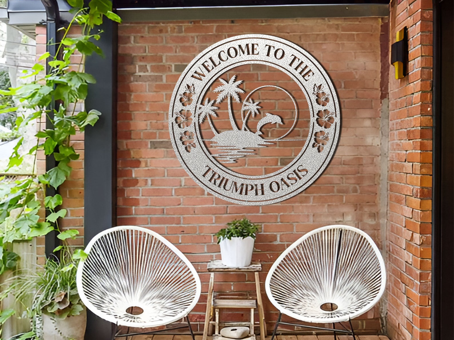Personalised Tropical Patio Metal Sign, Custom Backyard Pool Sign, Family Welcome Sign, Palm Tree Decor, Outdoor Patio Sign, Oasis Sign