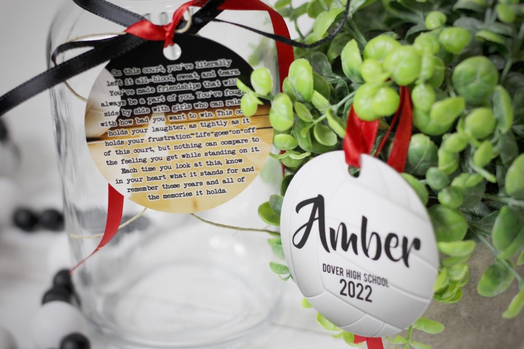 Use this personalized metal tag for a special gift for your volleyball player. Makes a great sentimental gift for senior volleyball players and it9;s perfect for Senior Night or sports banquets at your school.