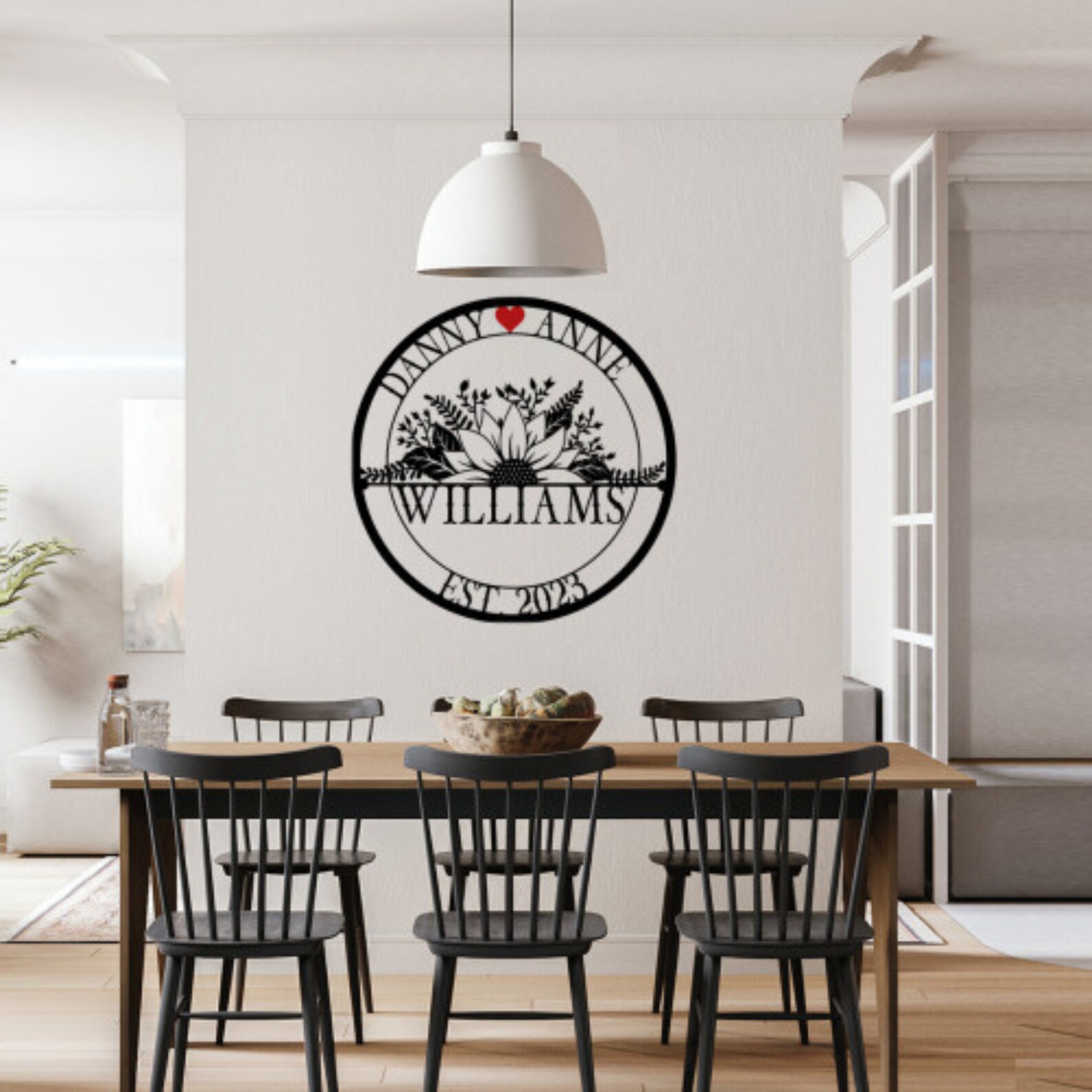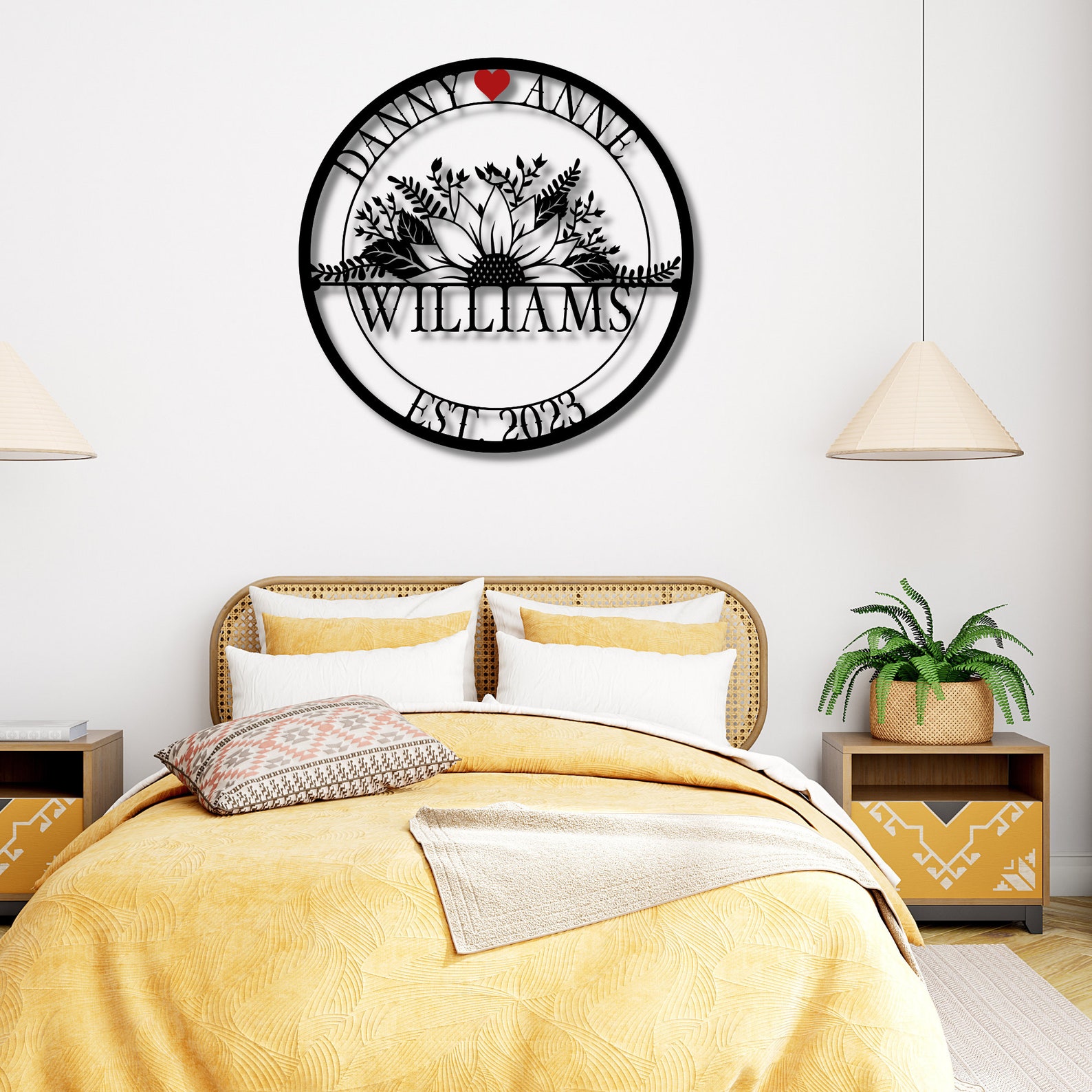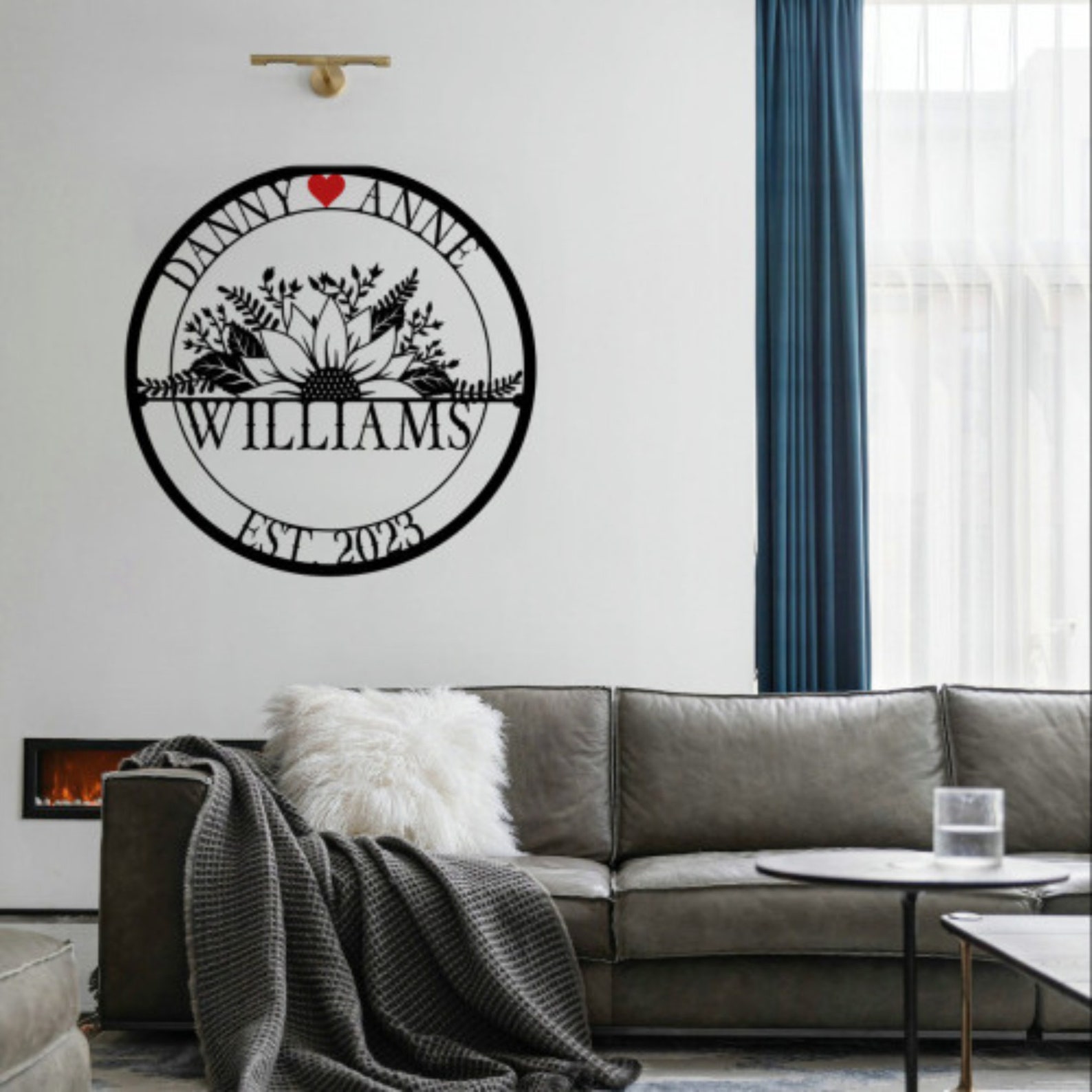 Red Heart & Sunflower Metal Wedding Sign Personalized