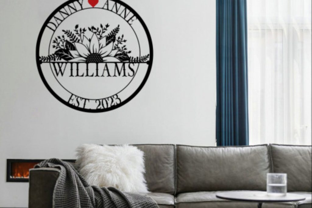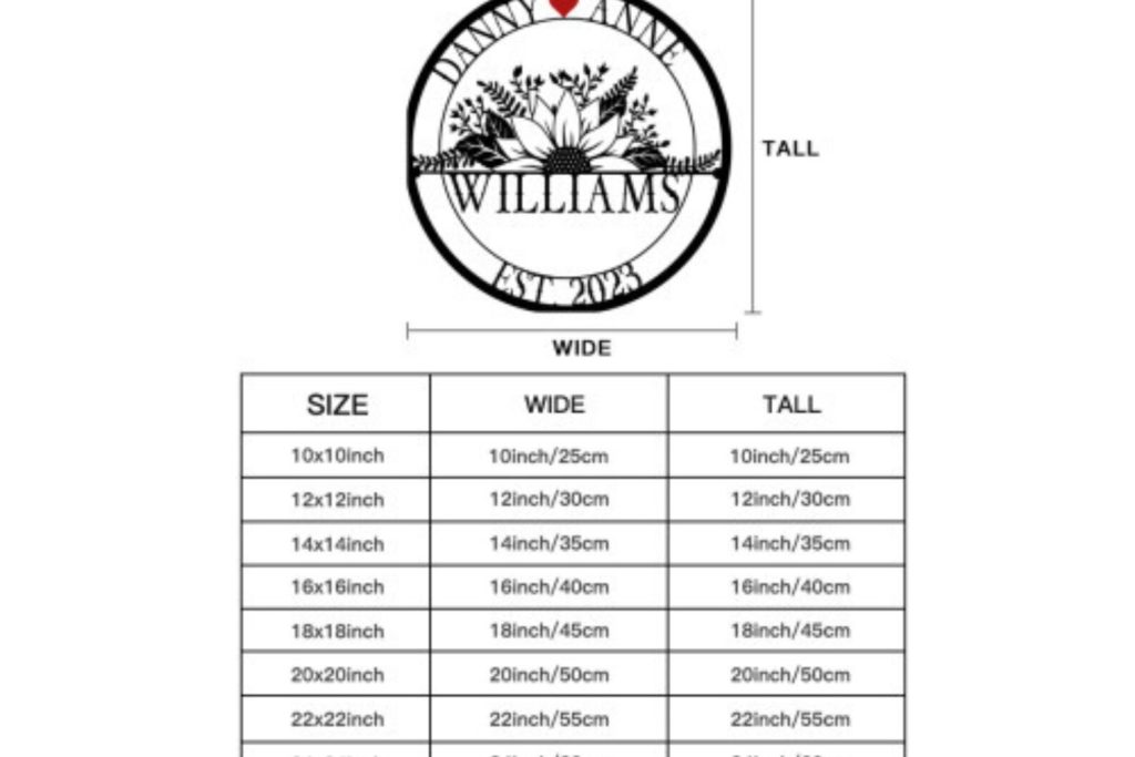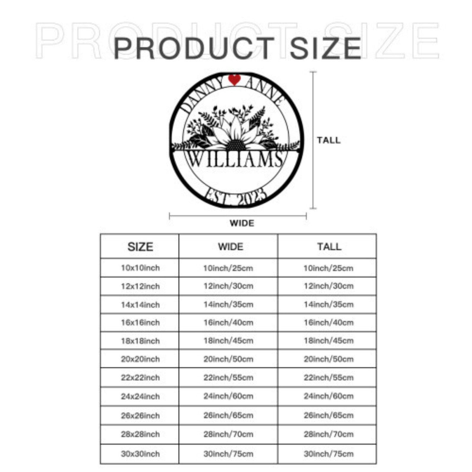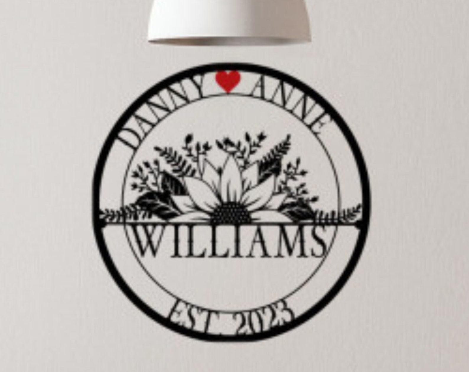 Red Heart & Sunflower Metal Wedding Sign Personalized