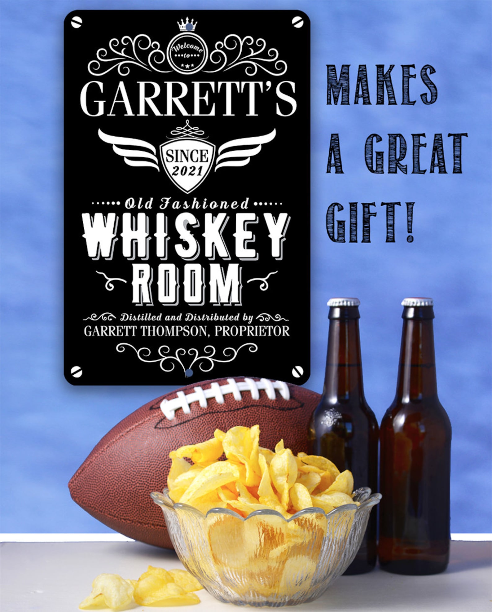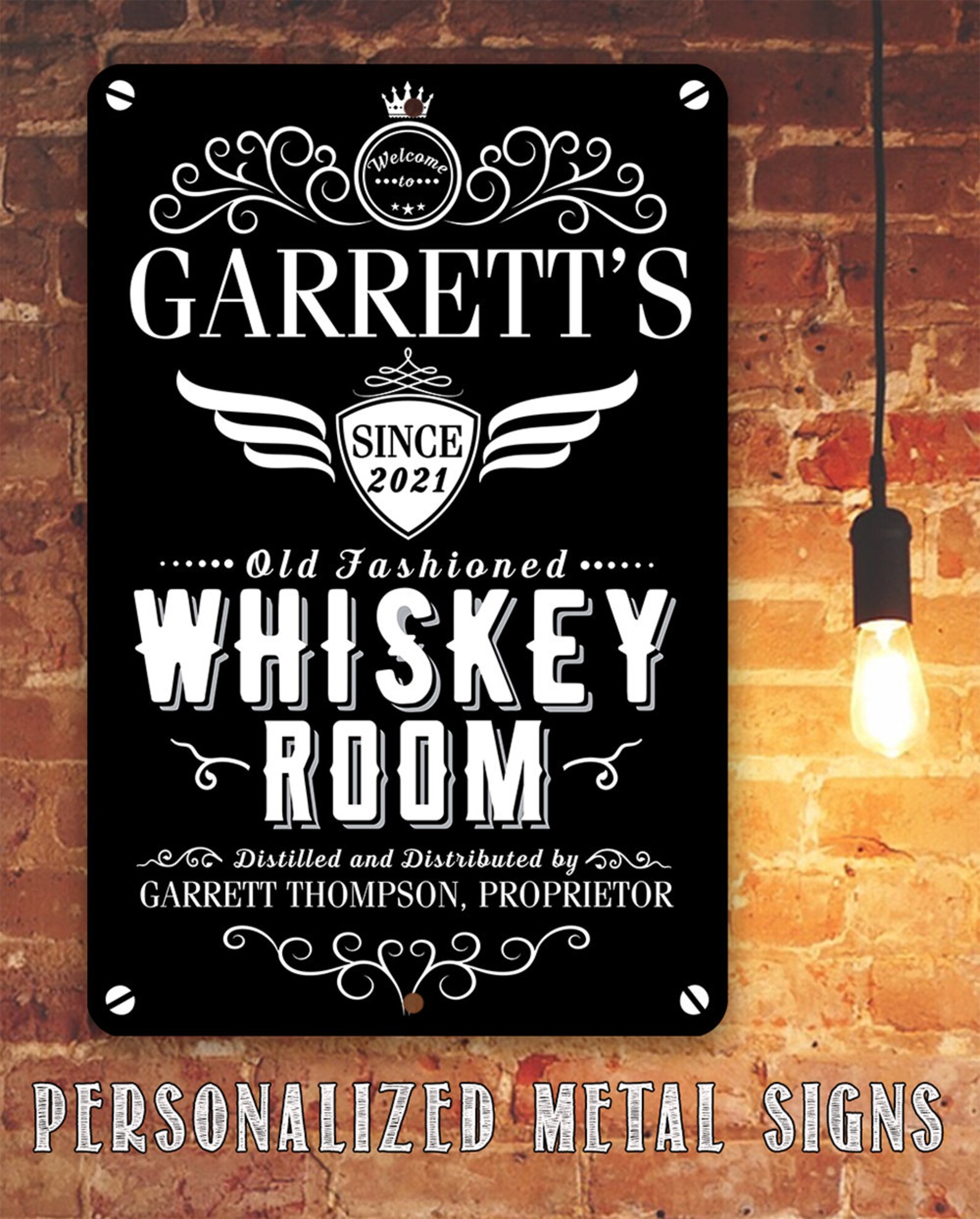 Personalized Whiskey Room Metal Sign – 8×12 or 12×18