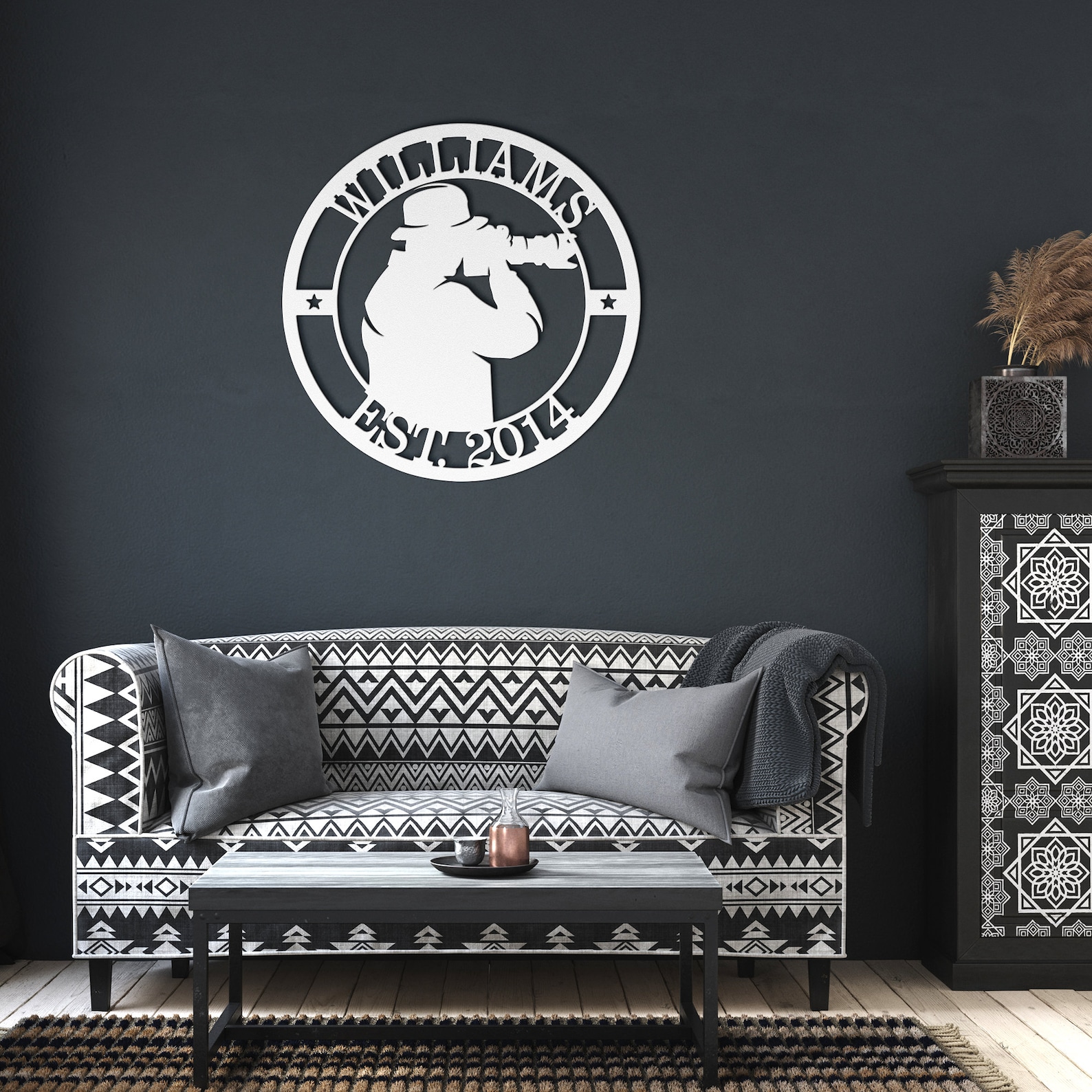 Upgrade your living space with our meticulously crafted metal sign, designed to bring a touch of elegance both indoors and out. Crafted from durable 18 gauge steel, each sign is powder-coated in your choice from 5 stunning colors: Black, Red, White, Copper, or Silver. With 6 size options ranging from 12" to 36", you can select the perfect fit based on the sign9;s maximum height or width, relative to its design orientation. Built to endure, our signs resist the elements, ensuring lasting beauty and charm for years to come. Orders will be dispatched from our production facility in Sioux Falls, South Dakota. During peak demand times, such as Christmas, Fathers Day, Mothers Day we may ship orders from Turkey to ensure timely delivery.