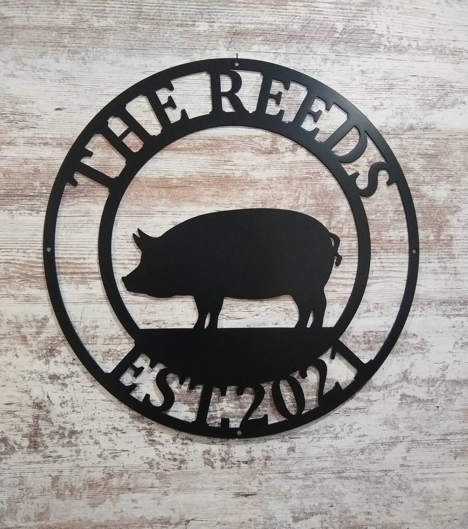 This sign is made of solid 14 gauge cold rolled american steel to be durable and to last. It is also powder coated to give it a durable long lasting finish that will withstand all elements inside or out.