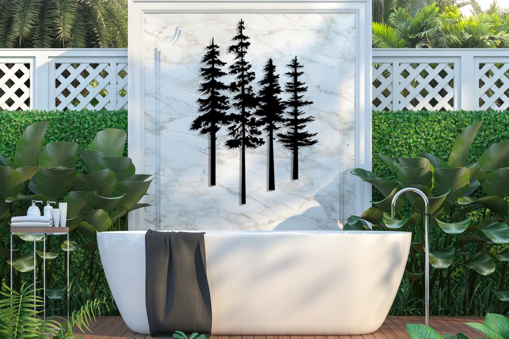 Pine Tree Metal Wall Art Set of 4, Tree Decor Wall Hanging, Tree Sign Home Decor, Large Outdoor Wall Art, Nature Lover Gift, Unique Home Decor