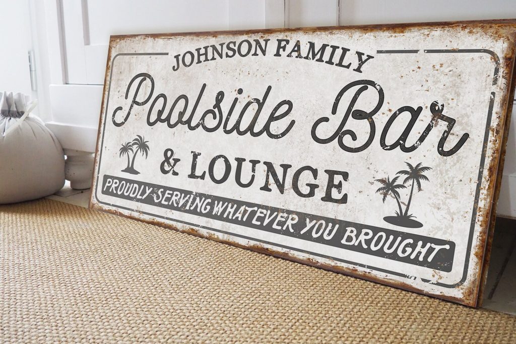 Custom Poolside Bartand Lounge SigntFamily Name WalltArt Tropical PooltSign PoolhousetDecor Canvas WoodtMetal Outdoor PatiotSign Outsidetno diving lifeguardton duty swimmingtgifts for dad momtnautical beach housetocean palm trees