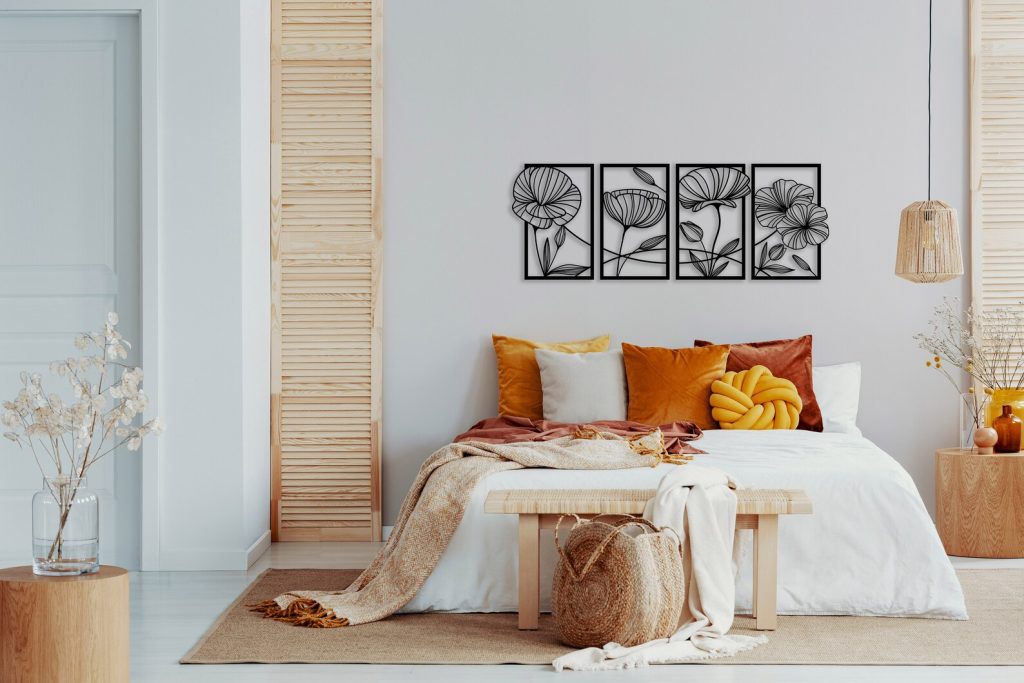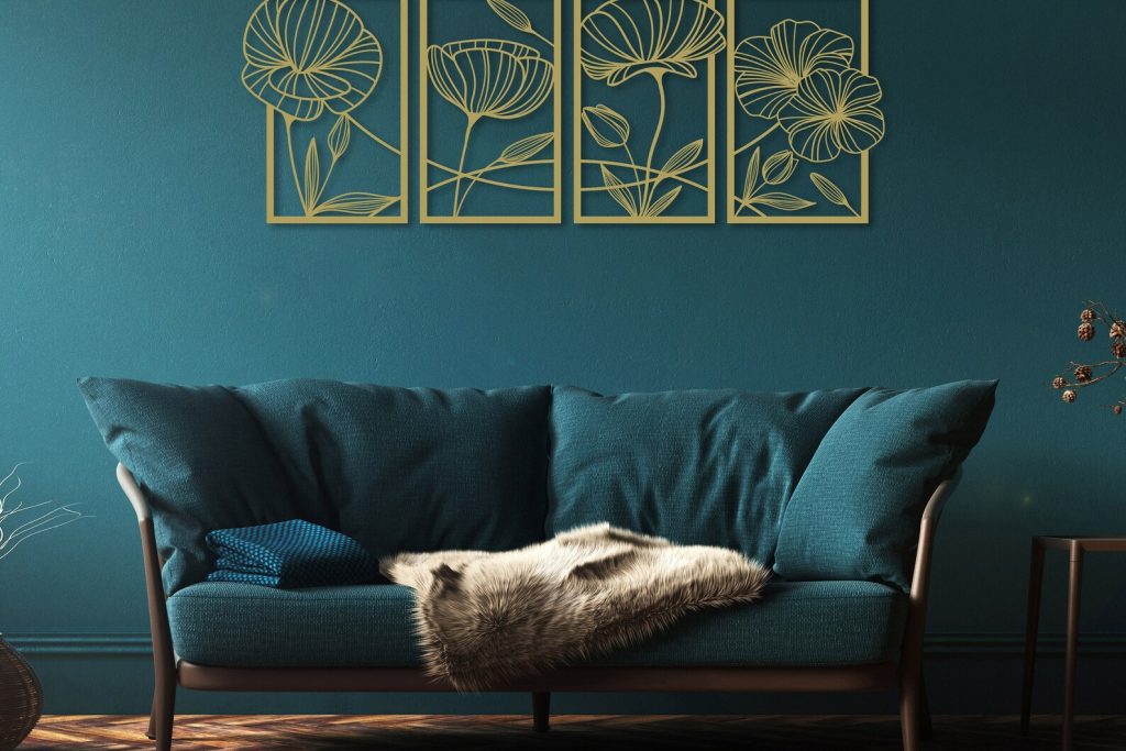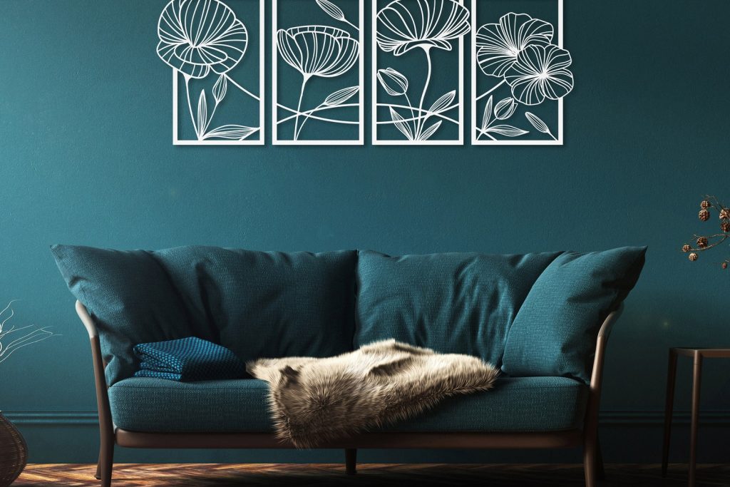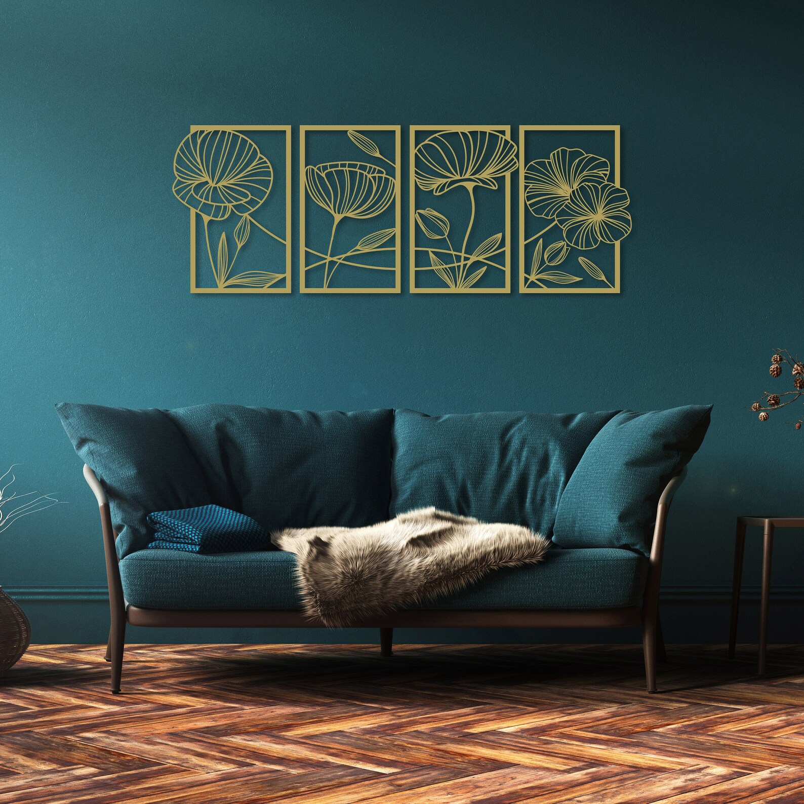 Poppy Flowers 4 Panels, Metal Flower Wall Art, Metal Wall Decor, 4 Pieces Wall Hangings, Metal Wall Art, Home Decoration, Tree Decor