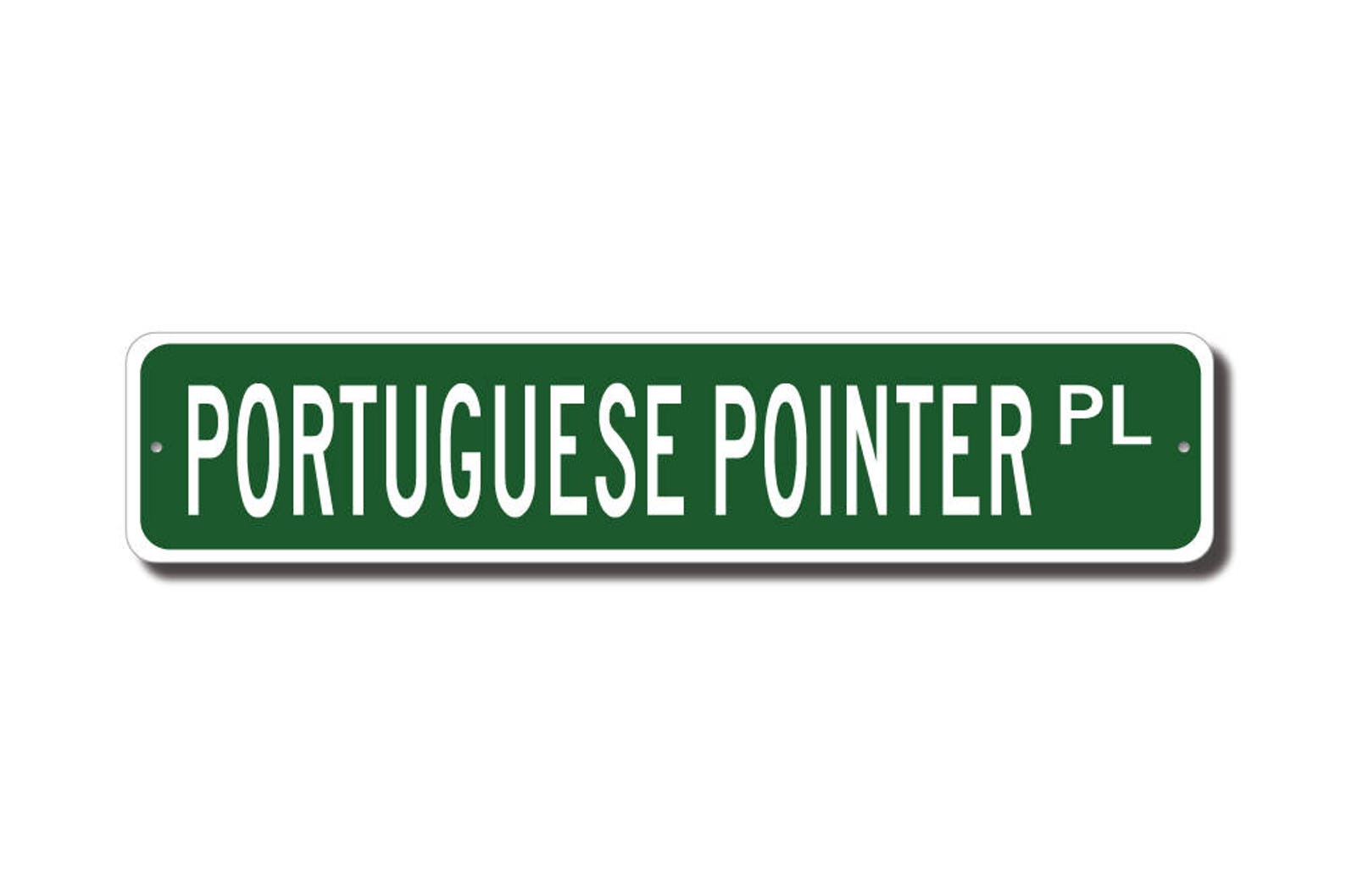 Portuguese Pointer lovers check out this awesome street sign! This will make the perfect piece for any Portuguese Pointer lover or Portuguese Pointer cave. Made of premium aluminum it will stand the test of time. This sign will look great in any room, garage, barn or office! Get this sign for your favorite friend that loves a Portuguese Pointer !