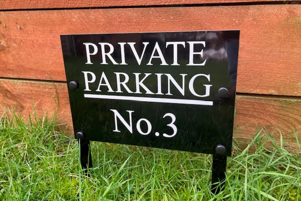 PERSONALISED PARKING SIGN WITH SPIKES.