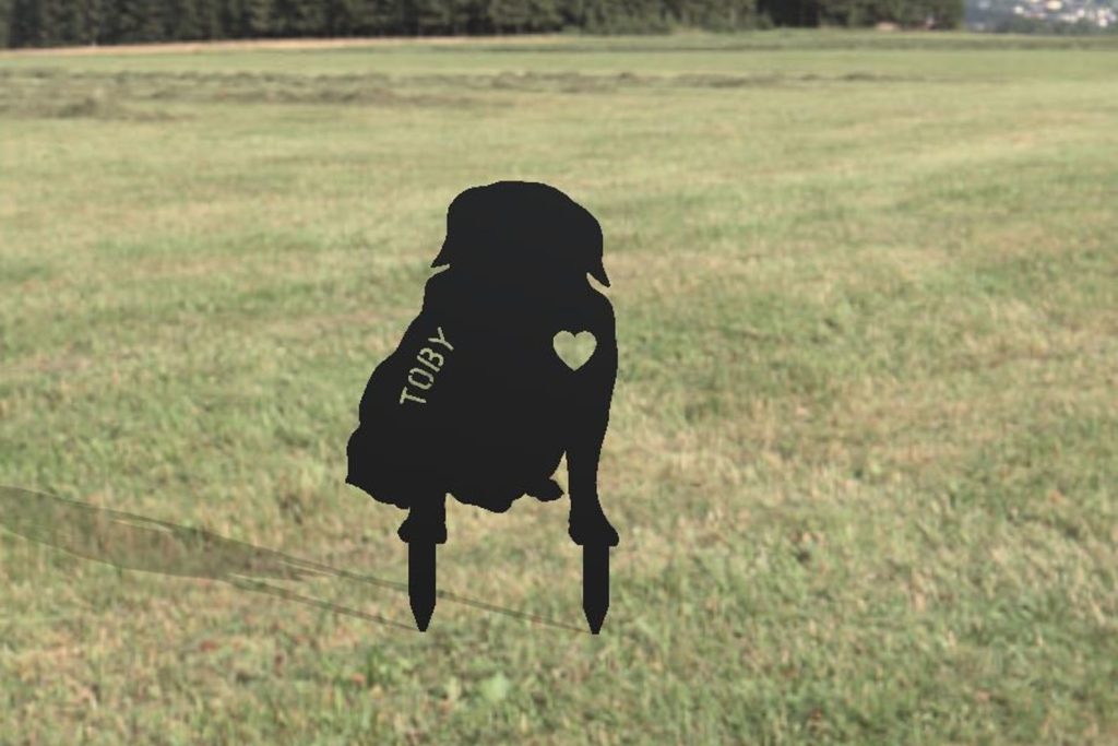 Cute Dog personalized metal yard art sign, made from heavy, durable 16 gauge steel. With high-quality workmanship. Add your custom text, dog or name on the sign.