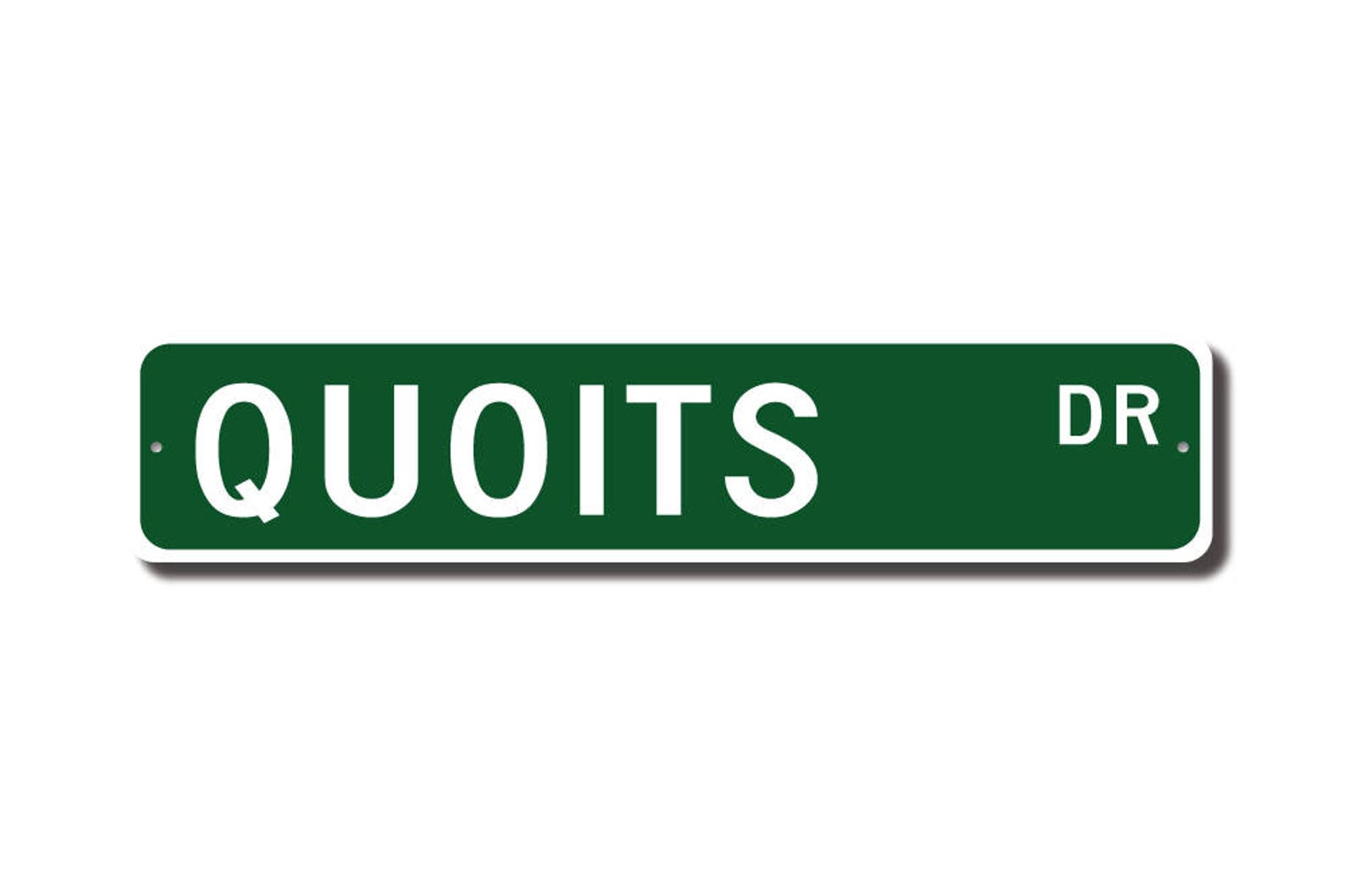 Quoits lovers check out this awesome street sign! This will make the perfect piece for any Quoits fan, or maybe you are a Quoits lover looking for a cool decor piece ! Made of premium aluminum it will stand the test of time. This sign will look great in any room, home den, cave, or office ! Get this sign for your favorite Quoits aficionado !