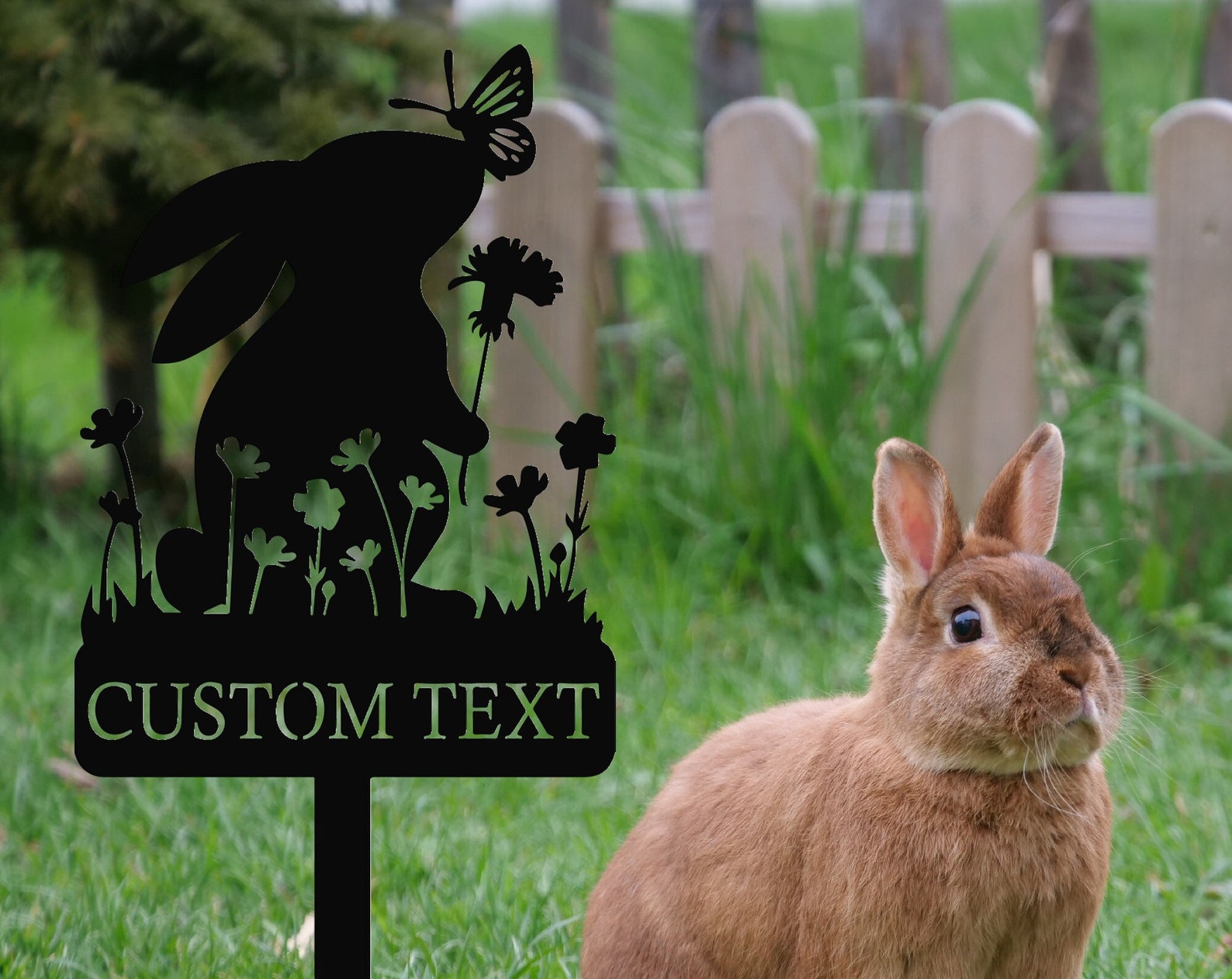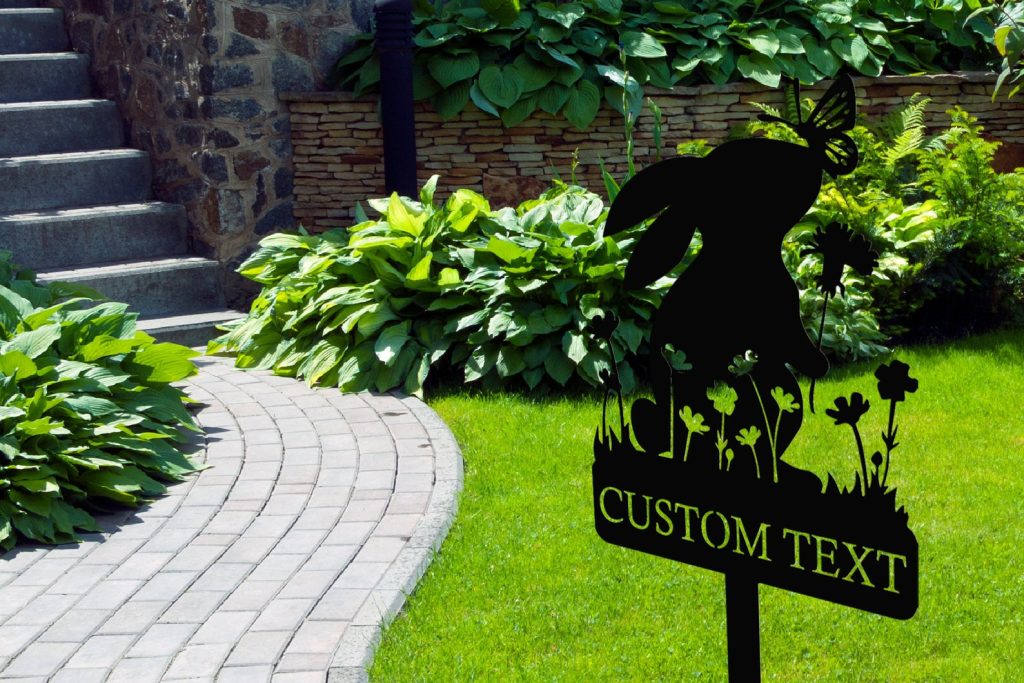 Metal Custom Name Rabbit Garden Stake, Bunny Garden Sign, Your Own Text Garden Decorations, Yard Decor Art, Gardener Gift, Mom9;s Garden Sign