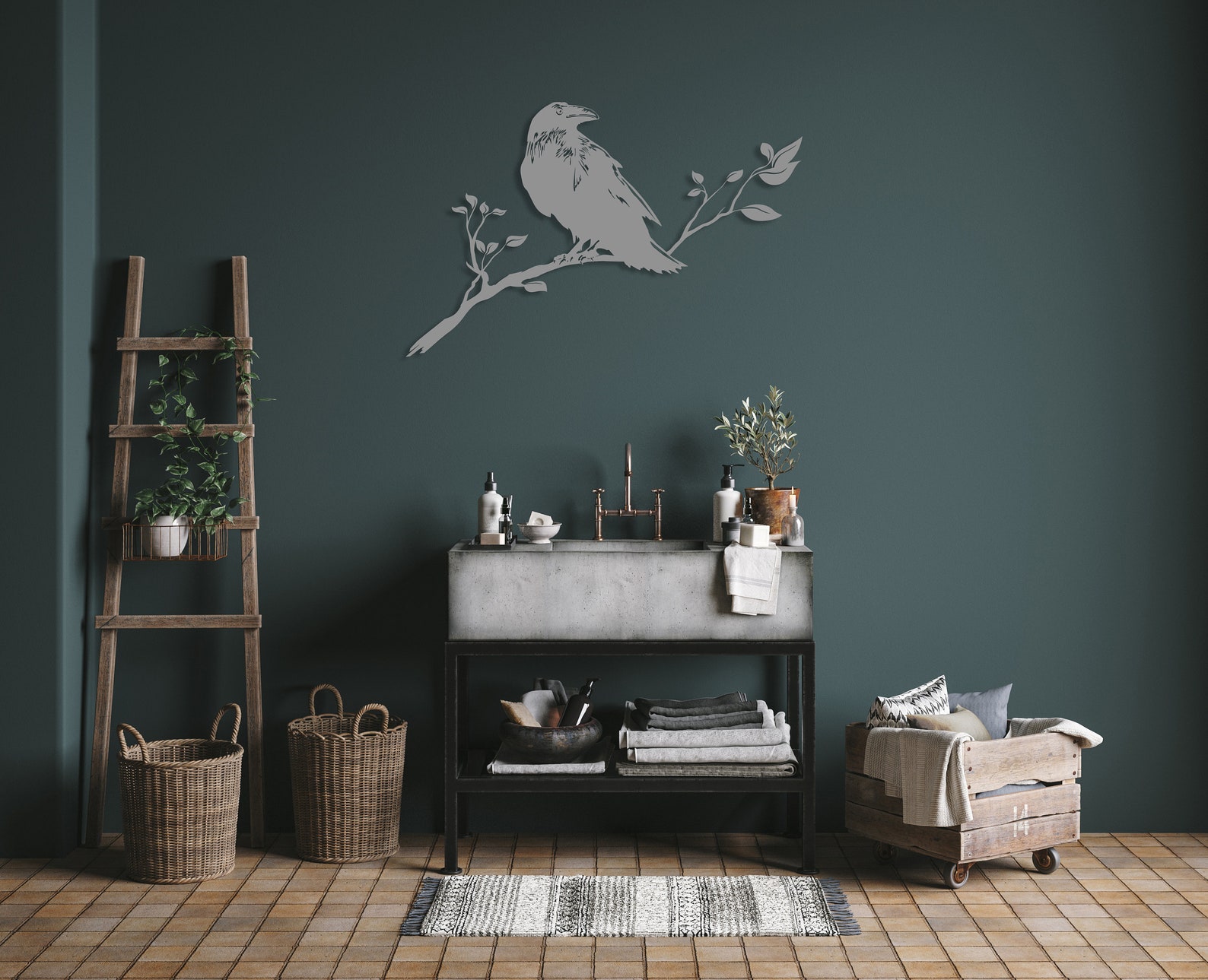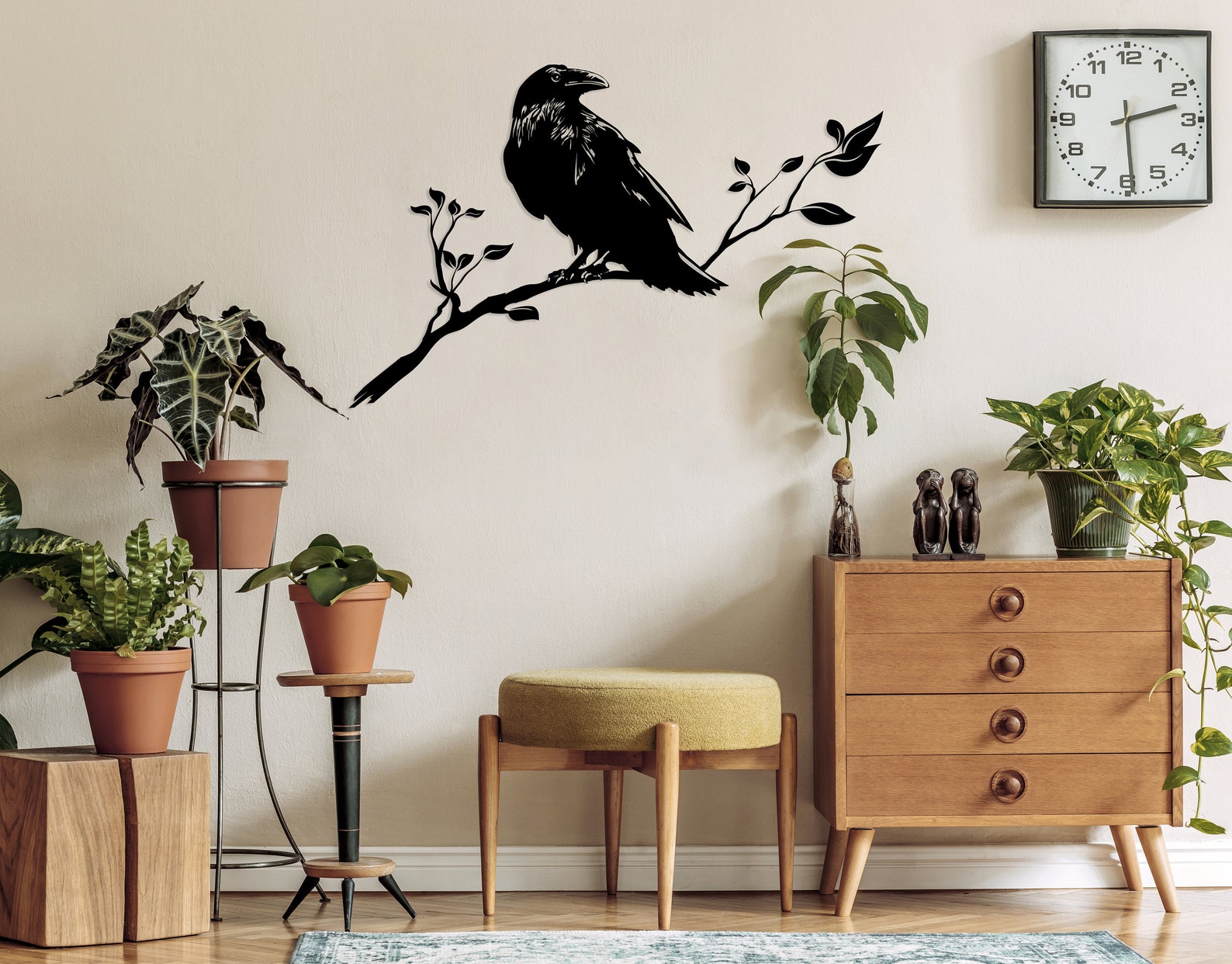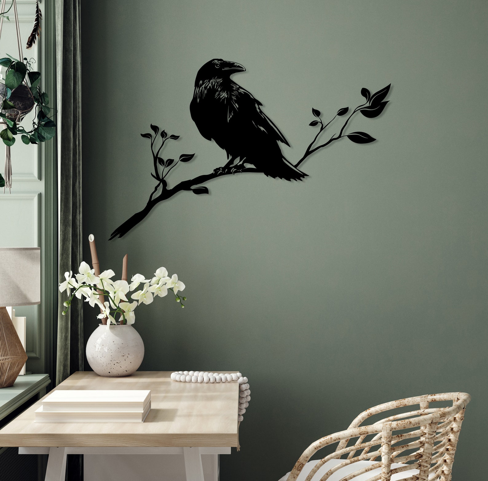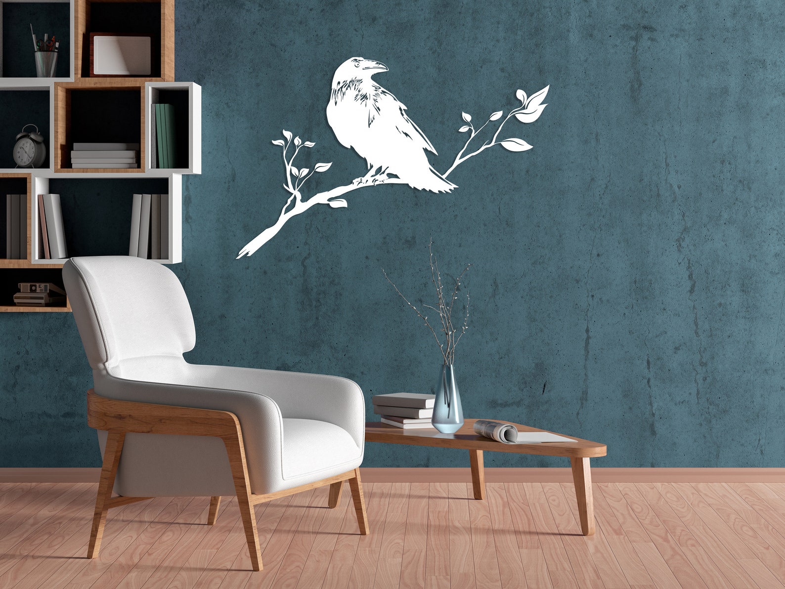 Raven on Branch Wall Decor, Metal Crow Wall Art, Birds Sign Art, Bird Metal Wall Decor, Living Room Sacred Interior Decor, Unique Home Decor