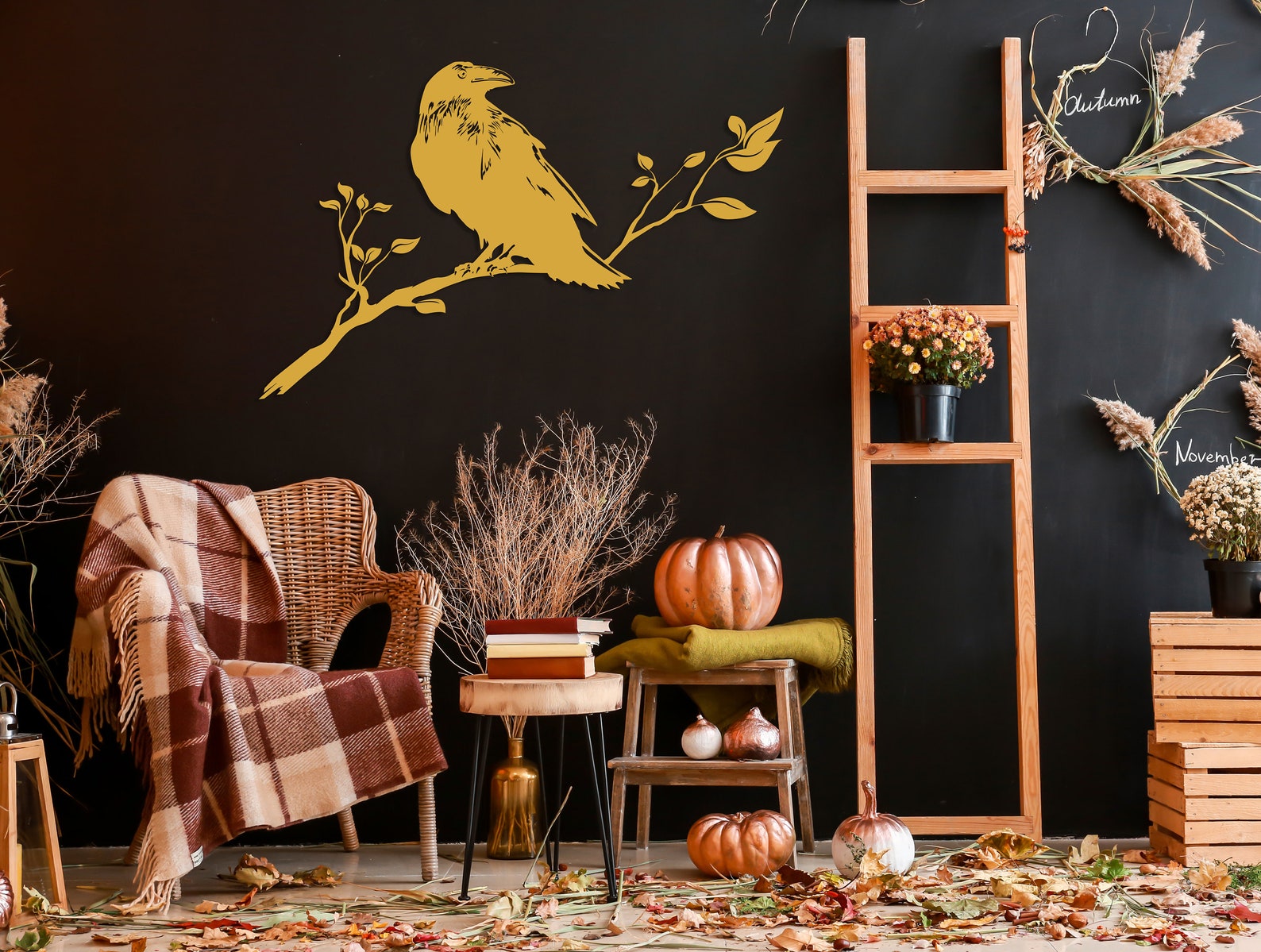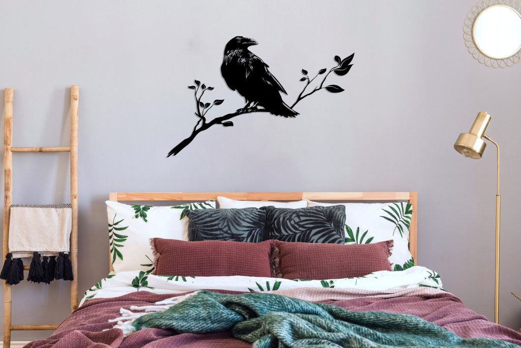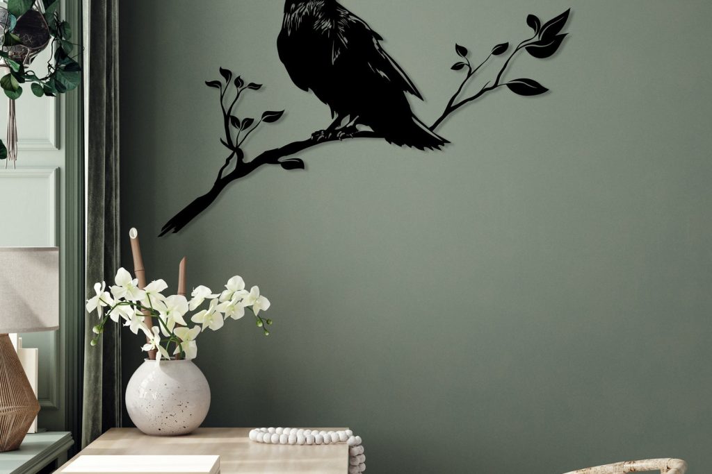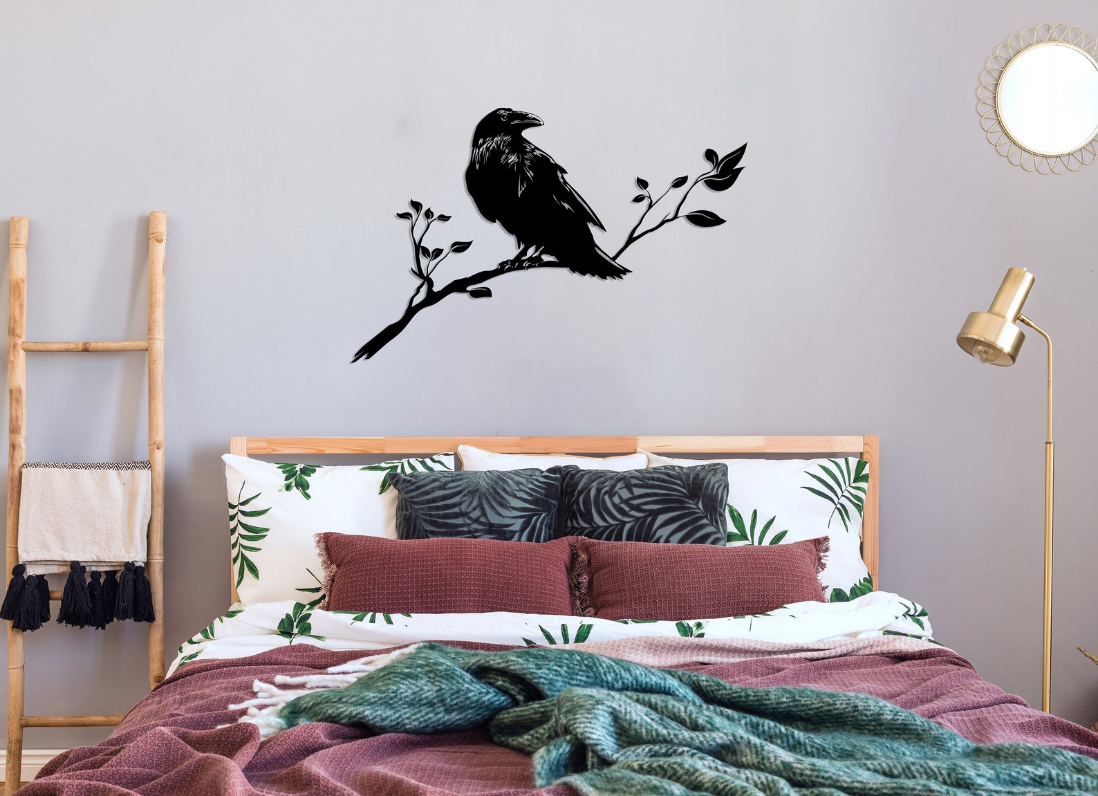 Raven on Branch Wall Decor, Metal Crow Wall Art, Birds Sign Art, Bird Metal Wall Decor, Living Room Sacred Interior Decor, Unique Home Decor