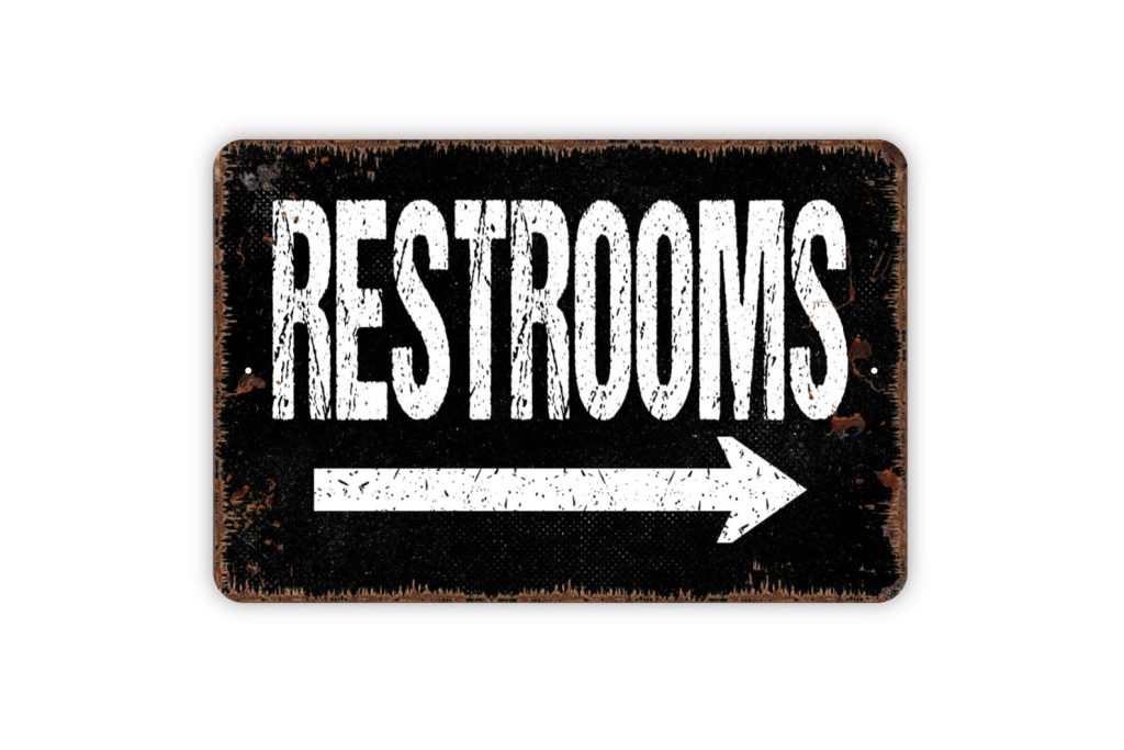 Restrooms Sign With Right or Left Arrow – Bathroom Metal Wall Art