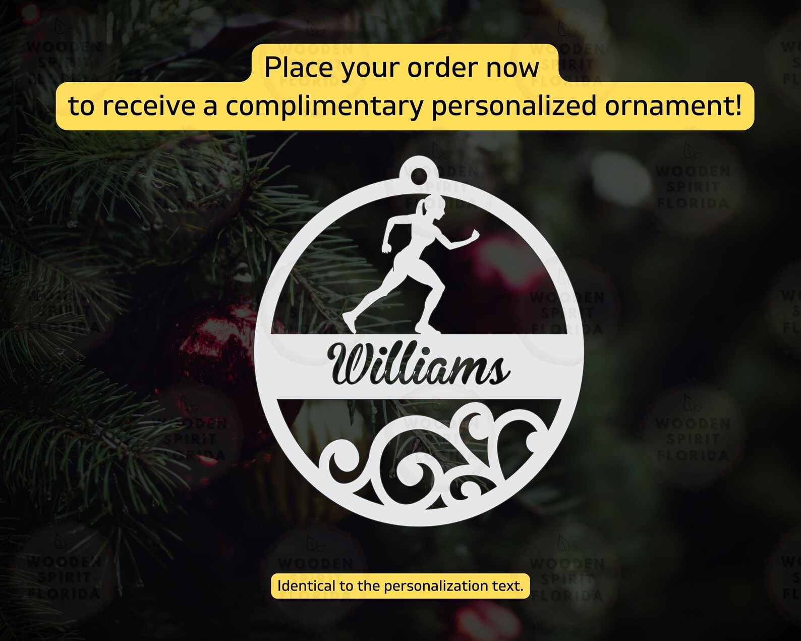Complement your purchase with a FREE ornament, tailored to match the personalized text of your order.