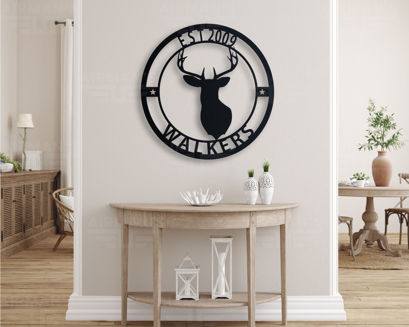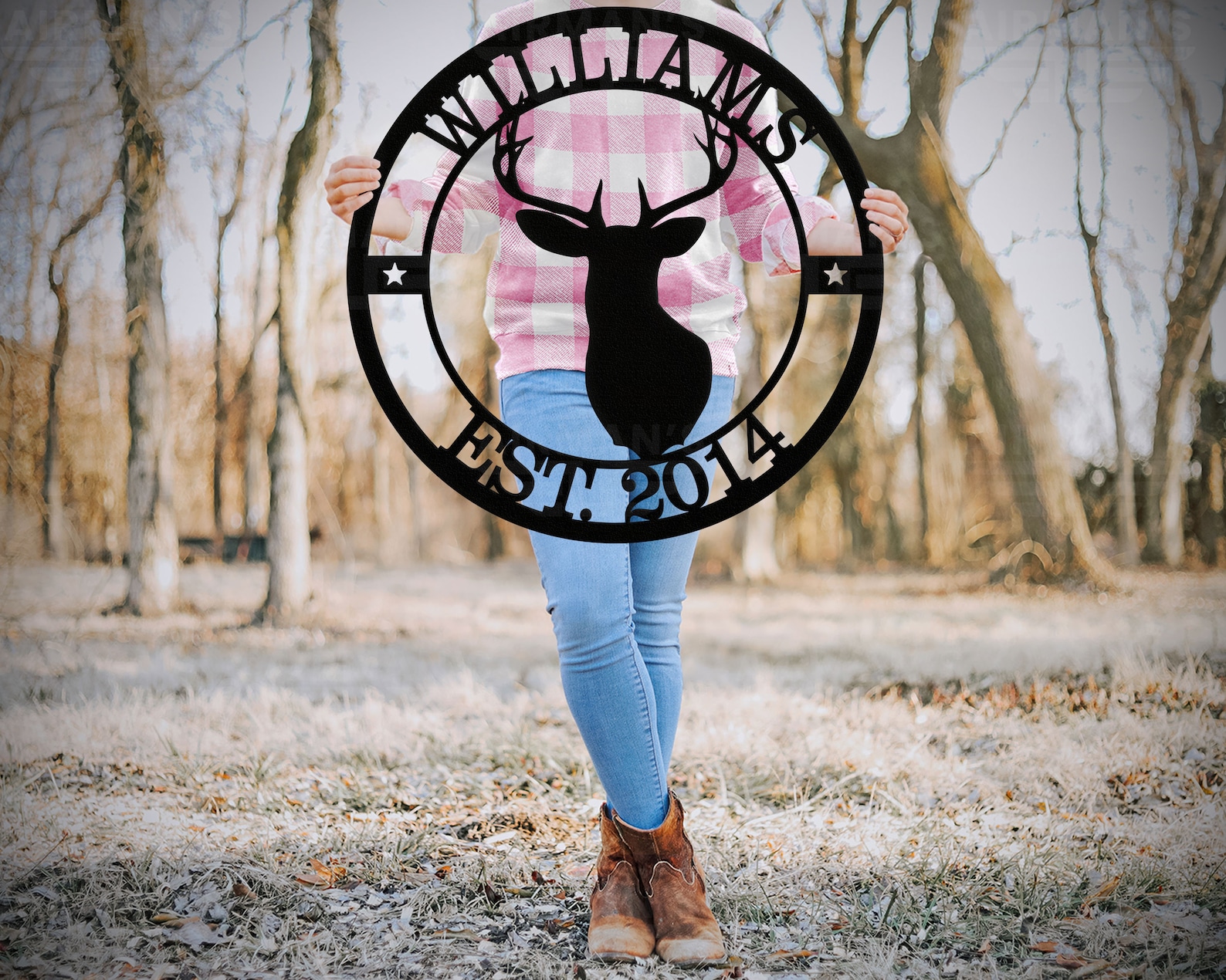 Rustic Deer Hunting Sign – Custom Wall Art, Metal Family Monogram
