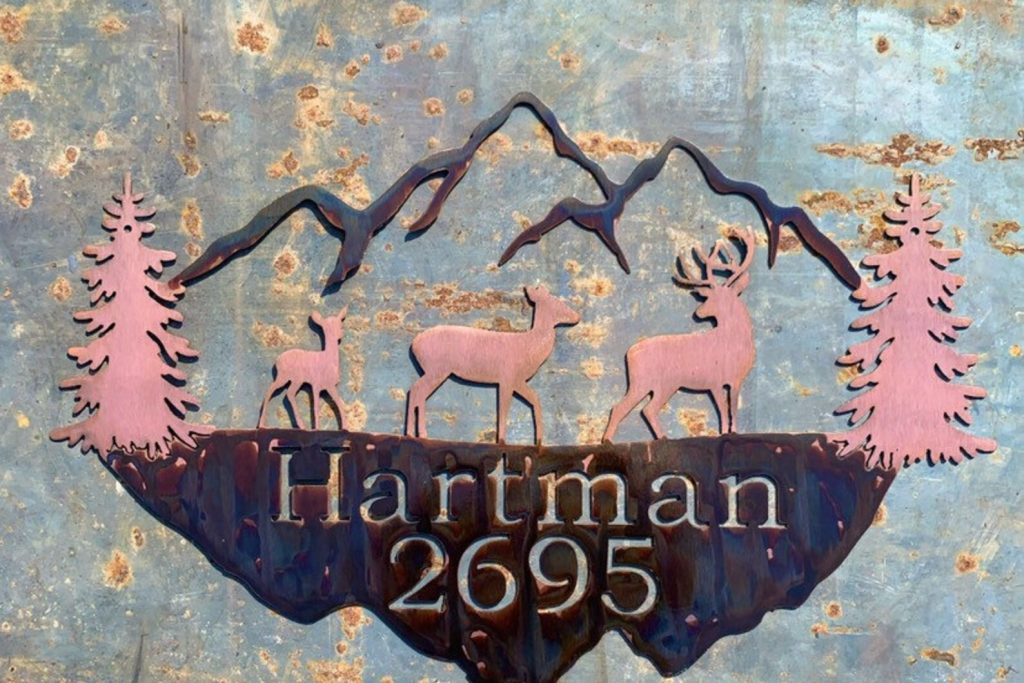 Rustic Mountain Cabin Address Sign with Metal House Numbers