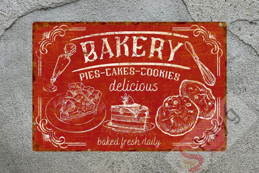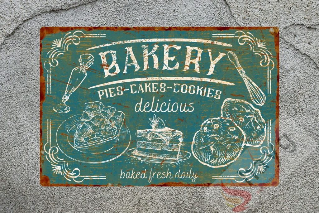 Rusty Look Aluminum Bakery Sign, Metal Wall Decor Cake Sign, Pie Sign