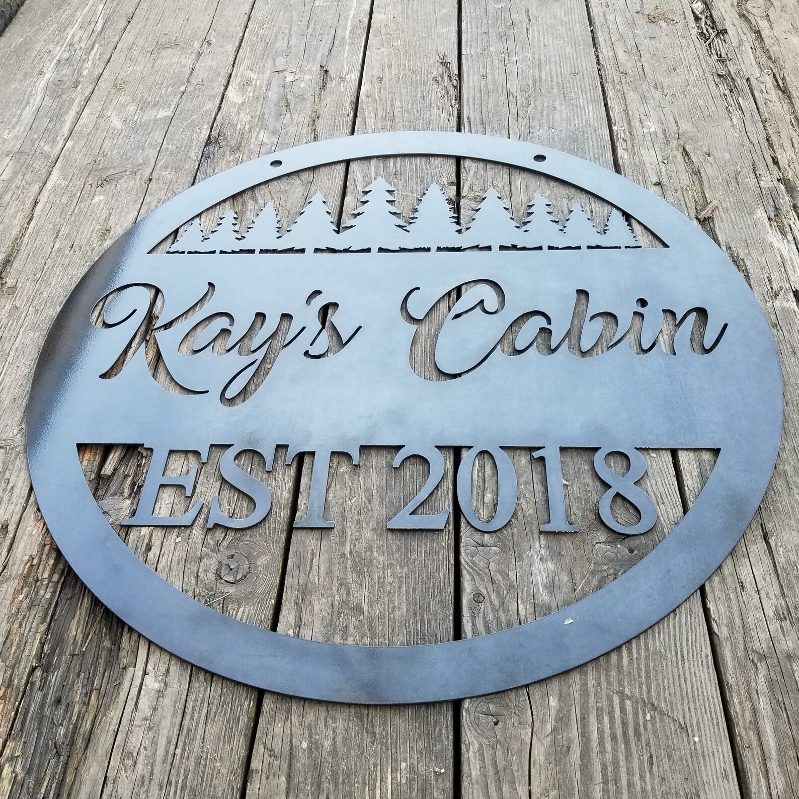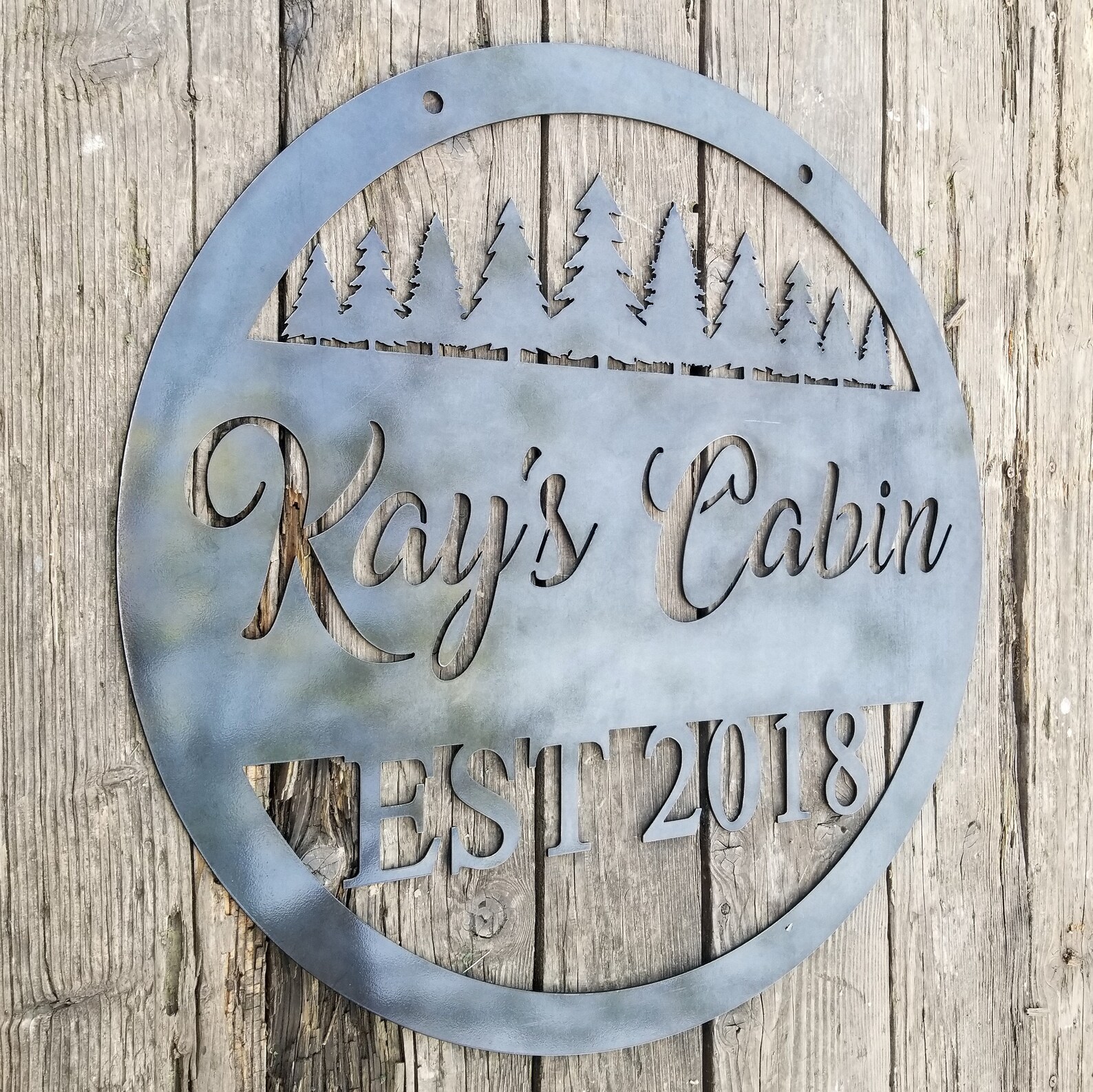 Show your appreciation for the nature that surrounds your family with this Scenic Alpine Round Sign! Personalized this piece with your family name, cabin name or lakehouse name topped with a treeline.