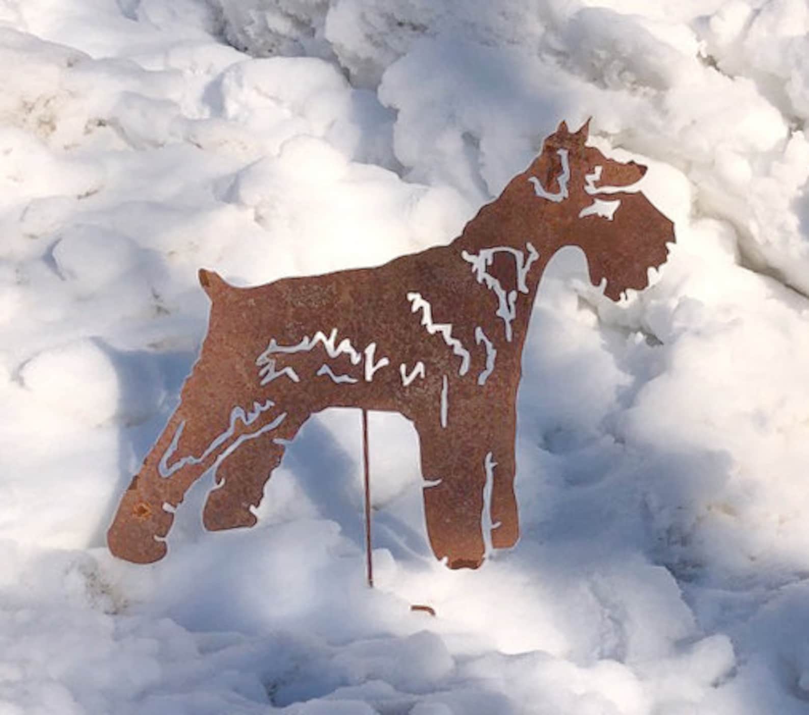 This handcrafted rustic metal Schnauzer Garden Stake or Metal Wall Art is a must have for any home or garden. A charming way to add some excitement to your home or outdoor garden decor.