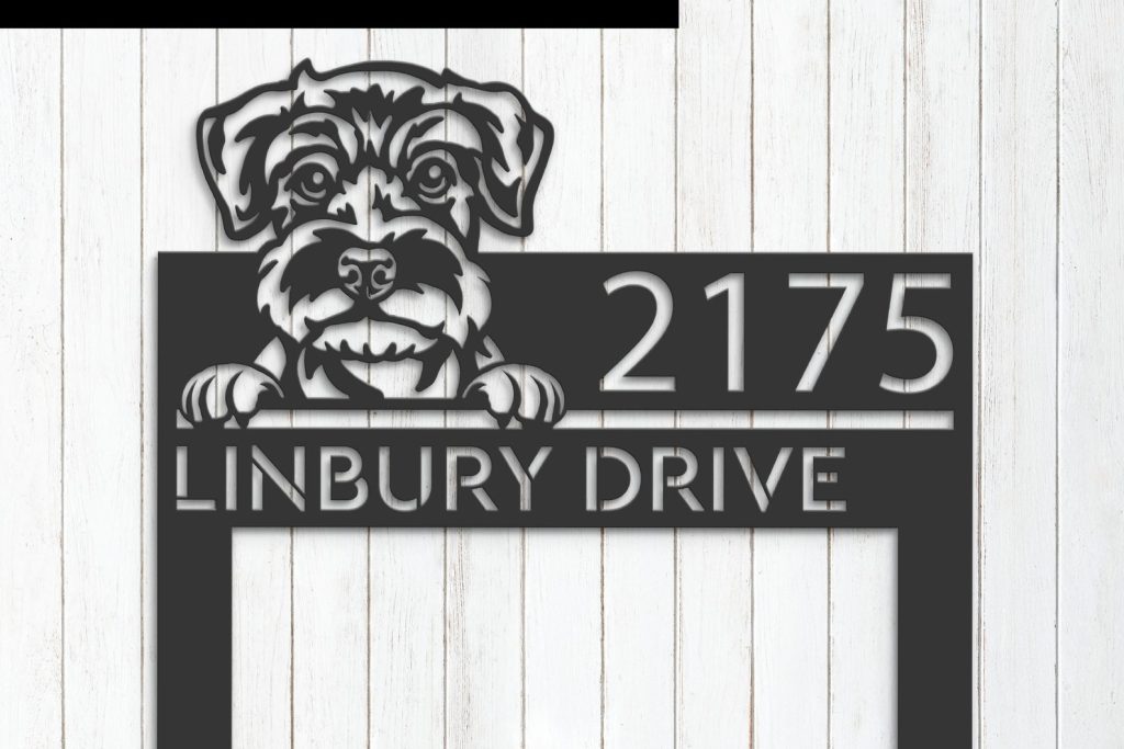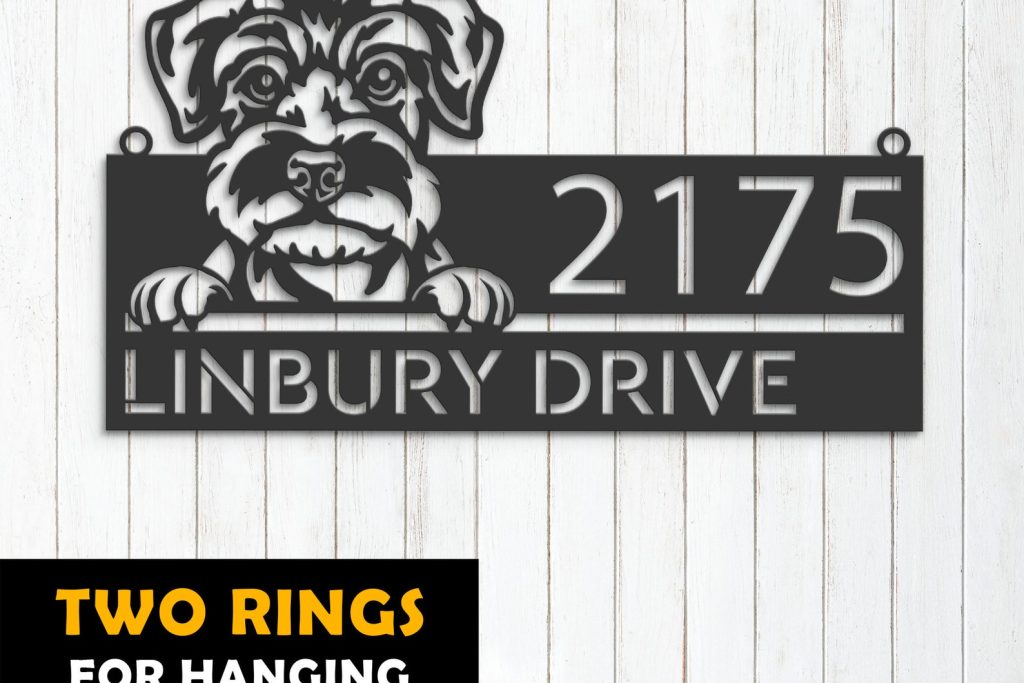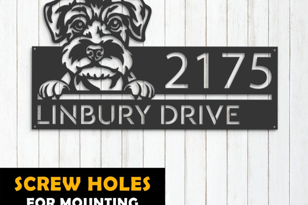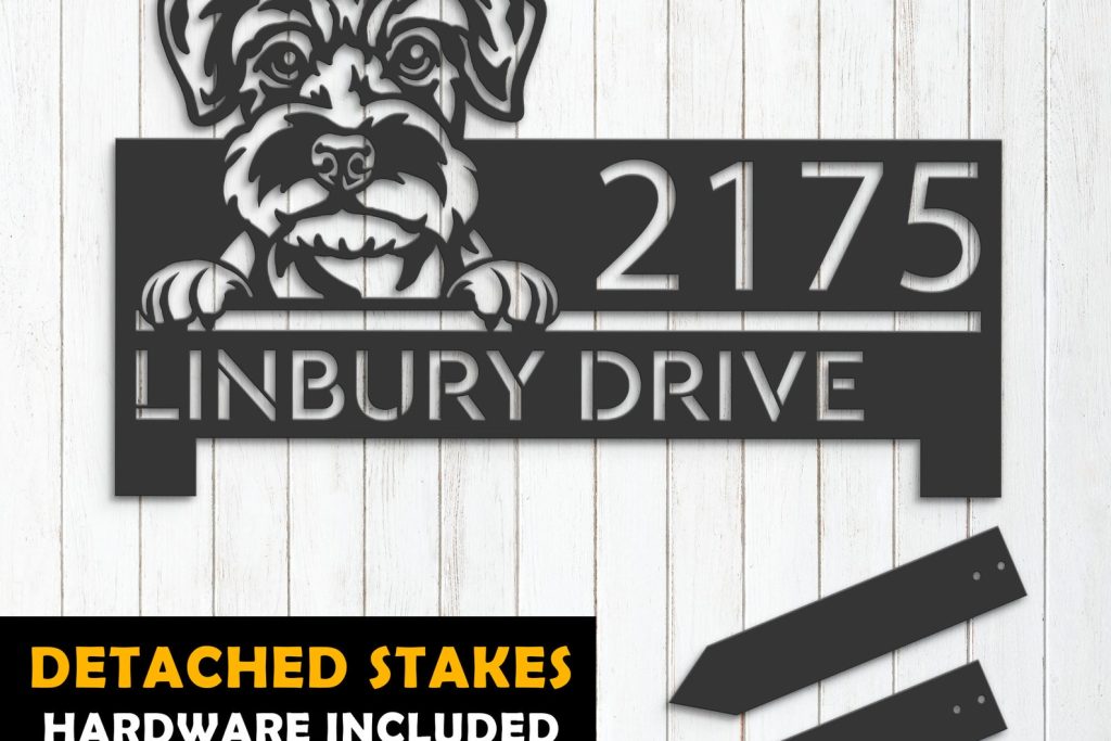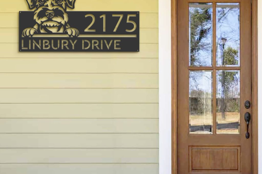 Schnauzer Puppy Metal Address Sign for Yard