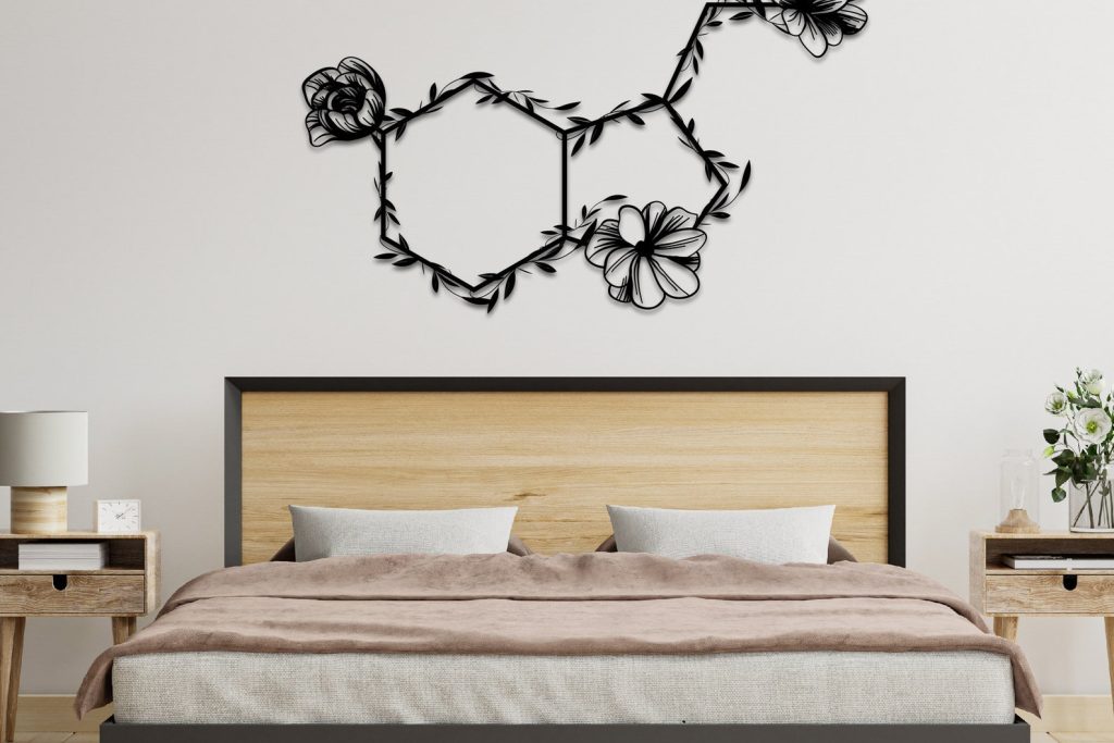 Serotonin Metal Wall Art ,Flowered Serotonin Molecule,Symbol of Happiness Wall Art,Unique Home Decor,Housewarming Gift,Above Bed Decor,Sign, Happiness Molecule Decor, Serotonin Symbol, Chemistry Wall Hangings, Wedding Gift, Mental Health Matters Design