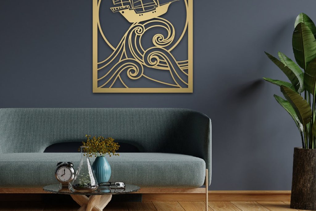 Ship and Wave Metal Wall Art,Ship on Waves Metal Wall Decor, Boho Home Decor, Above Bed Decor, Large Wall Art, Housewarming Gift, Yacht Deco