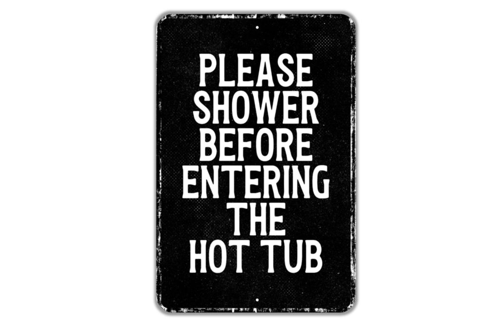 Be the first to review “Shower Before Hot Tub Metal Sign”