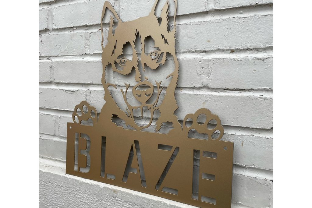 As avid dog owners, we understand how much our little friends mean to us. So why not get your husky their own personalized sign? Perfect for the patio, above their bowls, or even for the fence. Fabricated out of sturdy, 14 gauge steel and powder coated to withstand the elements.