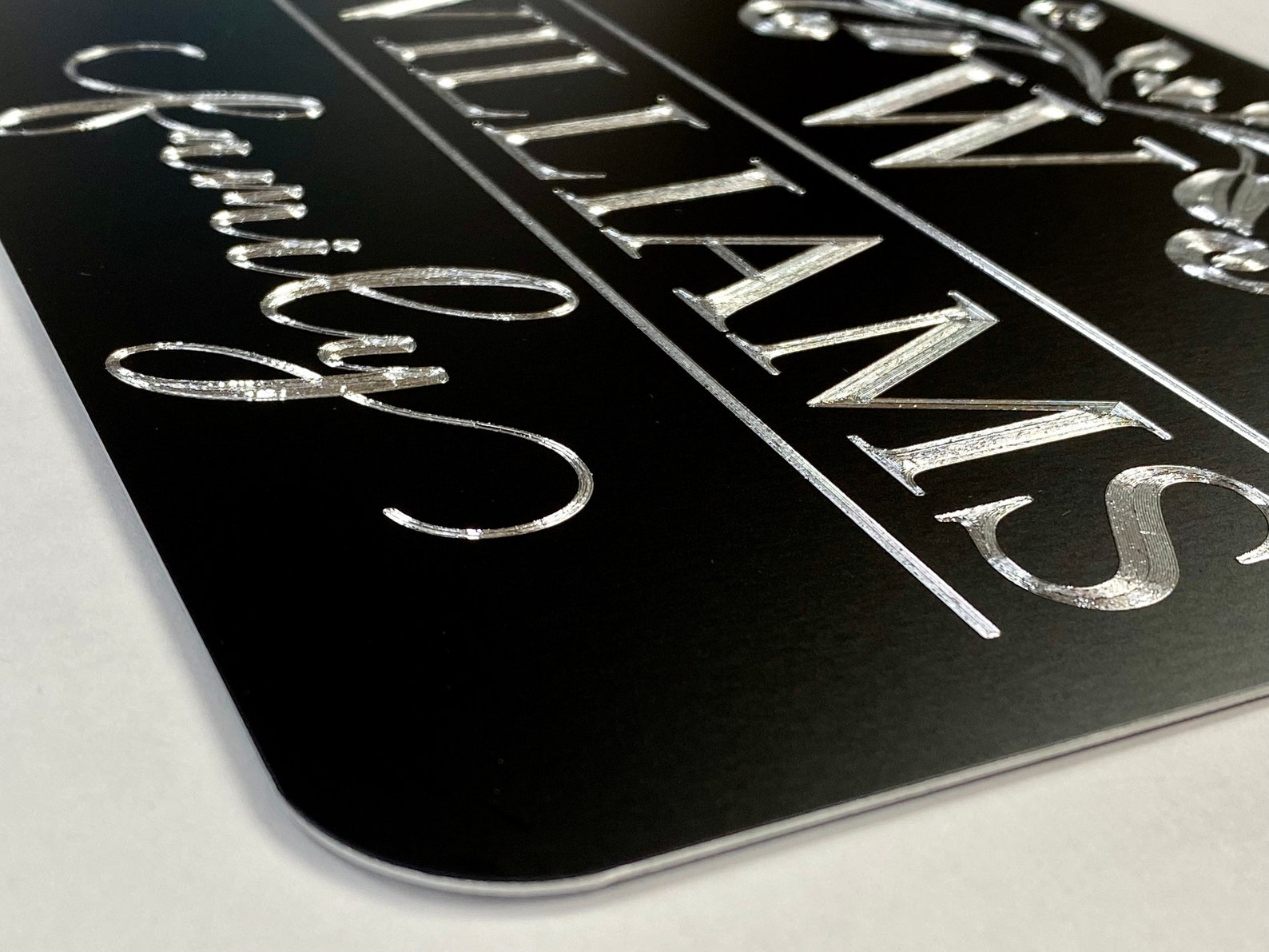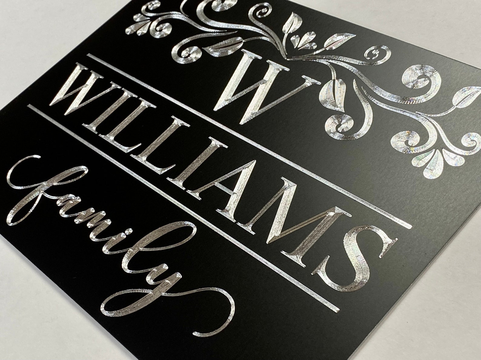 Be the first to review “Silver Engraved Family Name Sign, Wedding Gift”