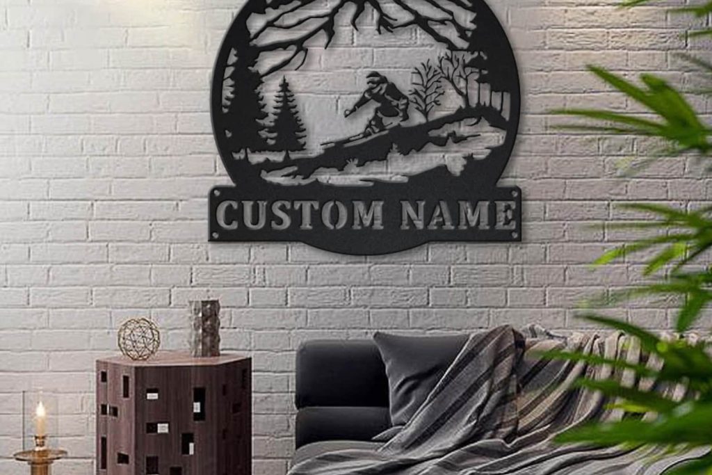 Skiing Sign, Personalized Metal Wall Art